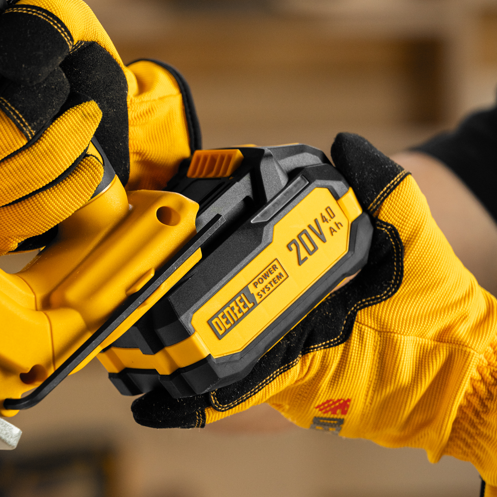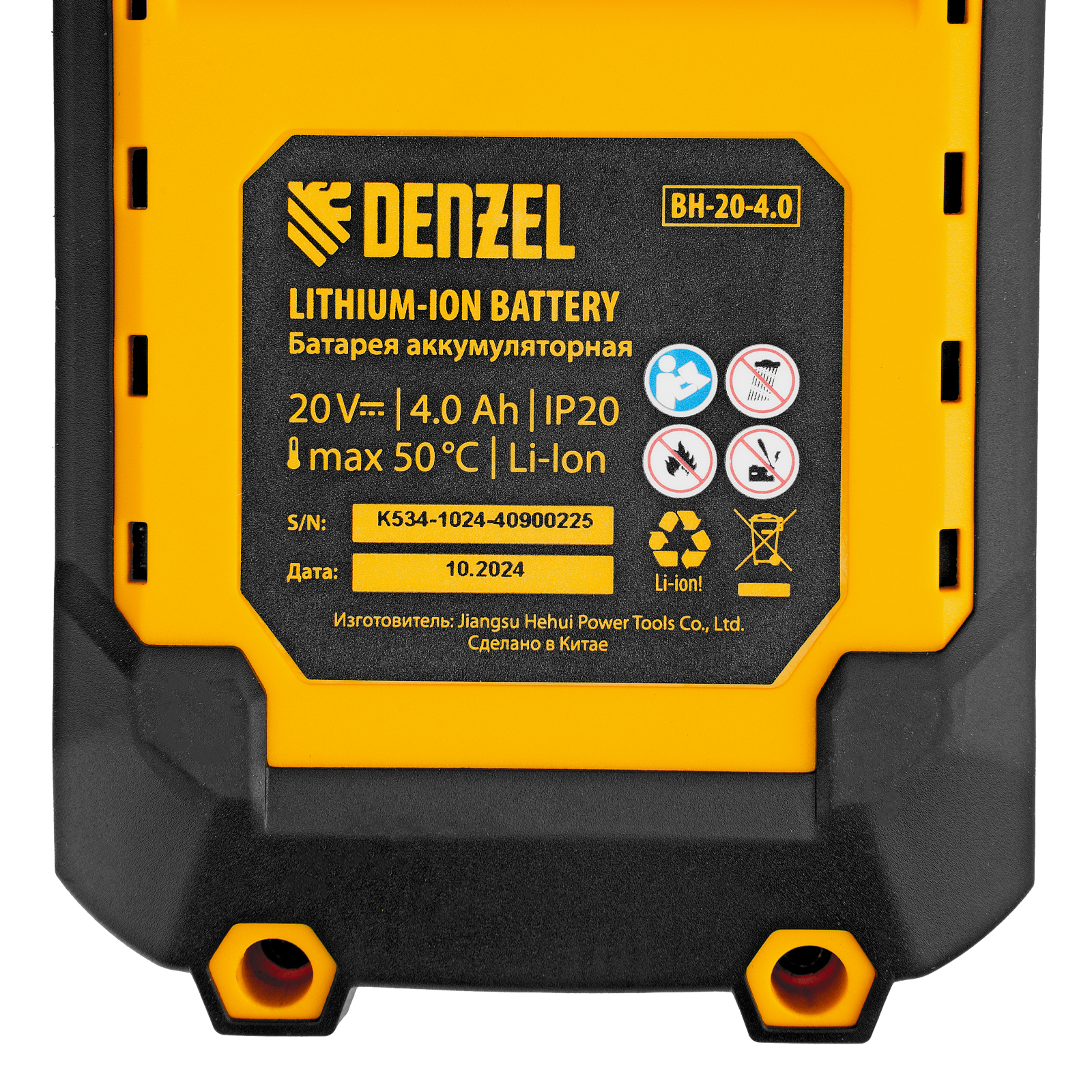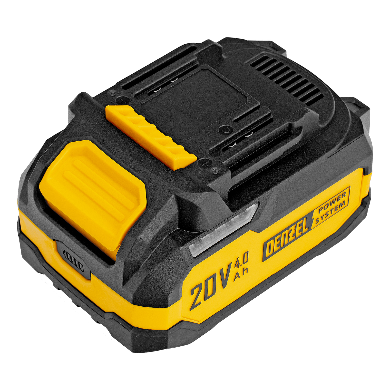 - Универсальный источник питания — аккумулятор Li-Ion емкостью 4 А·ч совместим со всеми инструментами единой платформы Denzel Power System 20V.