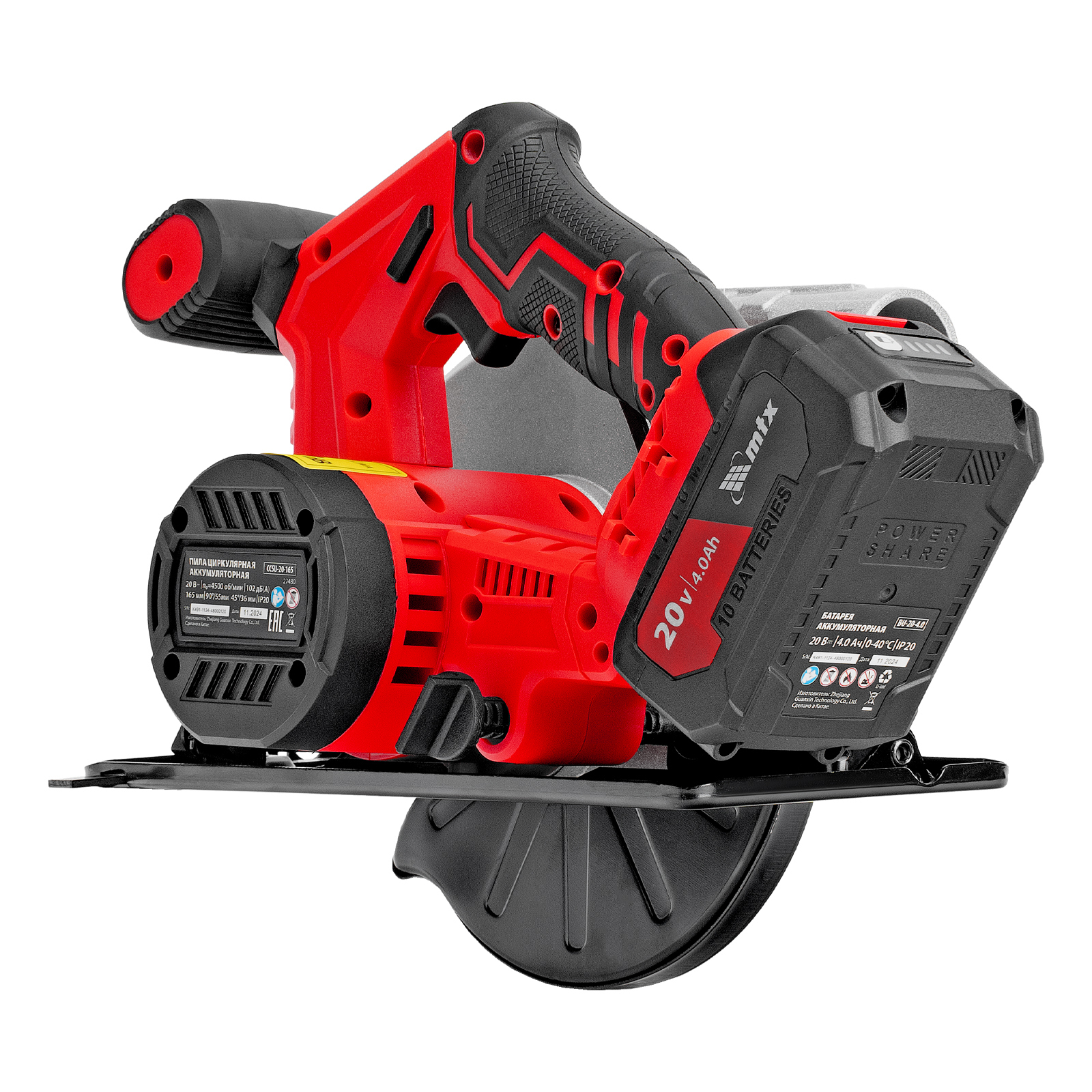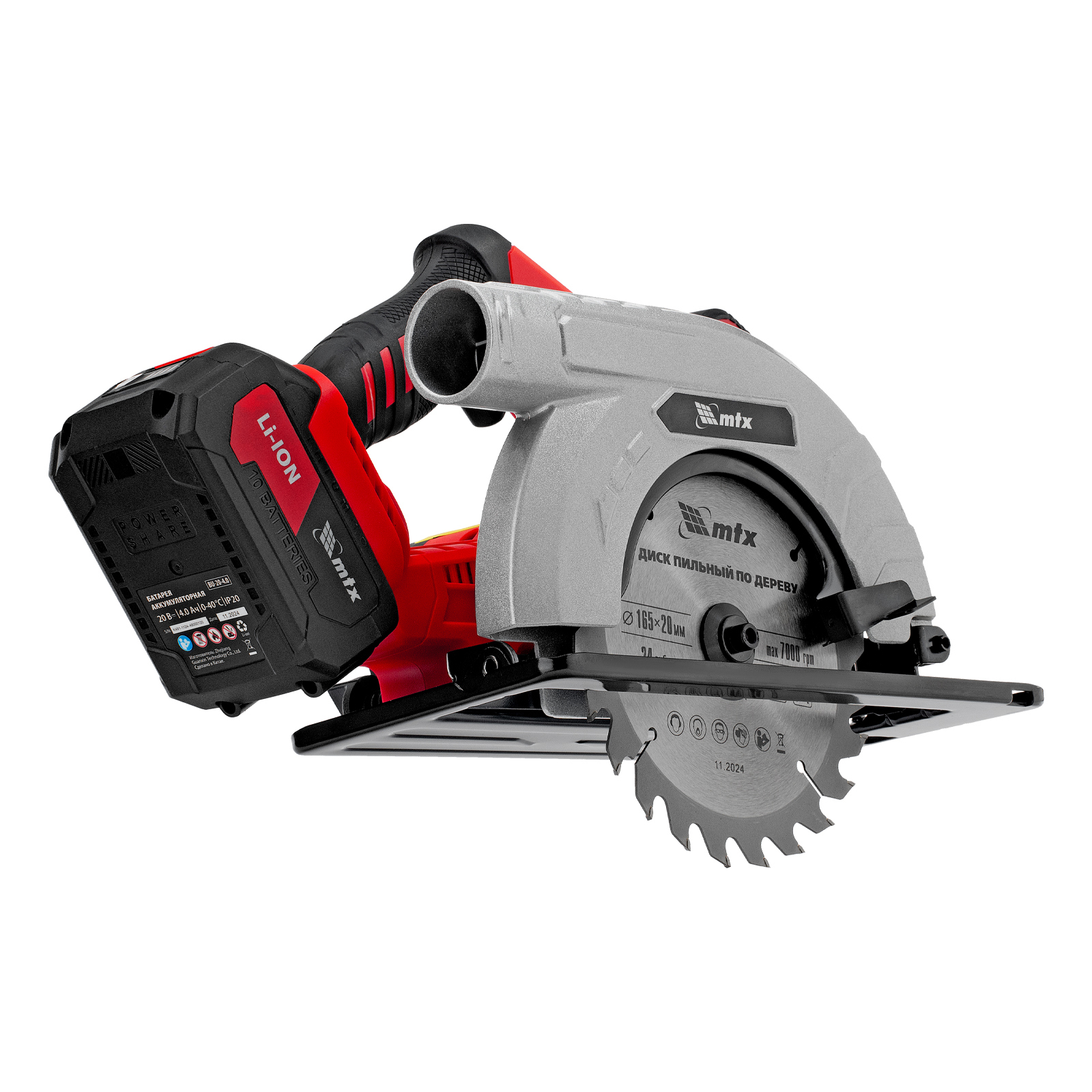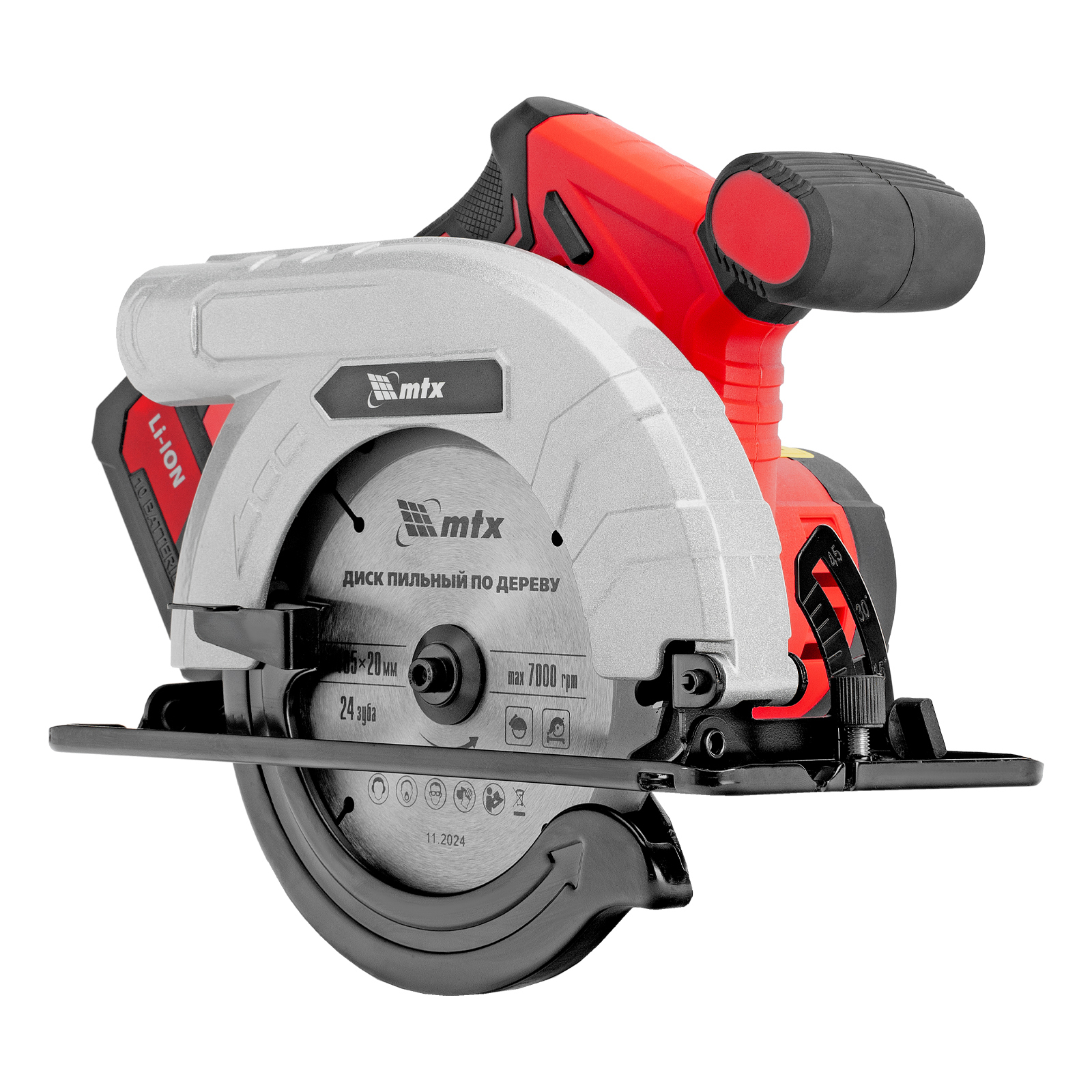 Аккумуляторная циркулярная пила MTX CCSU-20-165 27480 работает от аккумулятора Li-Ion 20 В и совместима с пильными дисками диаметром 165 мм. Предназначена для выполнения продольных и поперечных резов в древесине. При использовании специальной оснастки возможен распил заготовок из алюминия. Двигатель поддерживает частоту вращения шпинделя 4500 об/мин, что обеспечивает высокую производительность. Глубина пропила регулируется в зависимости от толщины обрабатываемой детали и достигает 55 мм под углом 90° и 36 мм под углом 45°. Аккумулятор Li-Ion емкостью 4 А·ч обеспечивает стабильную работу в течение длительного времени.