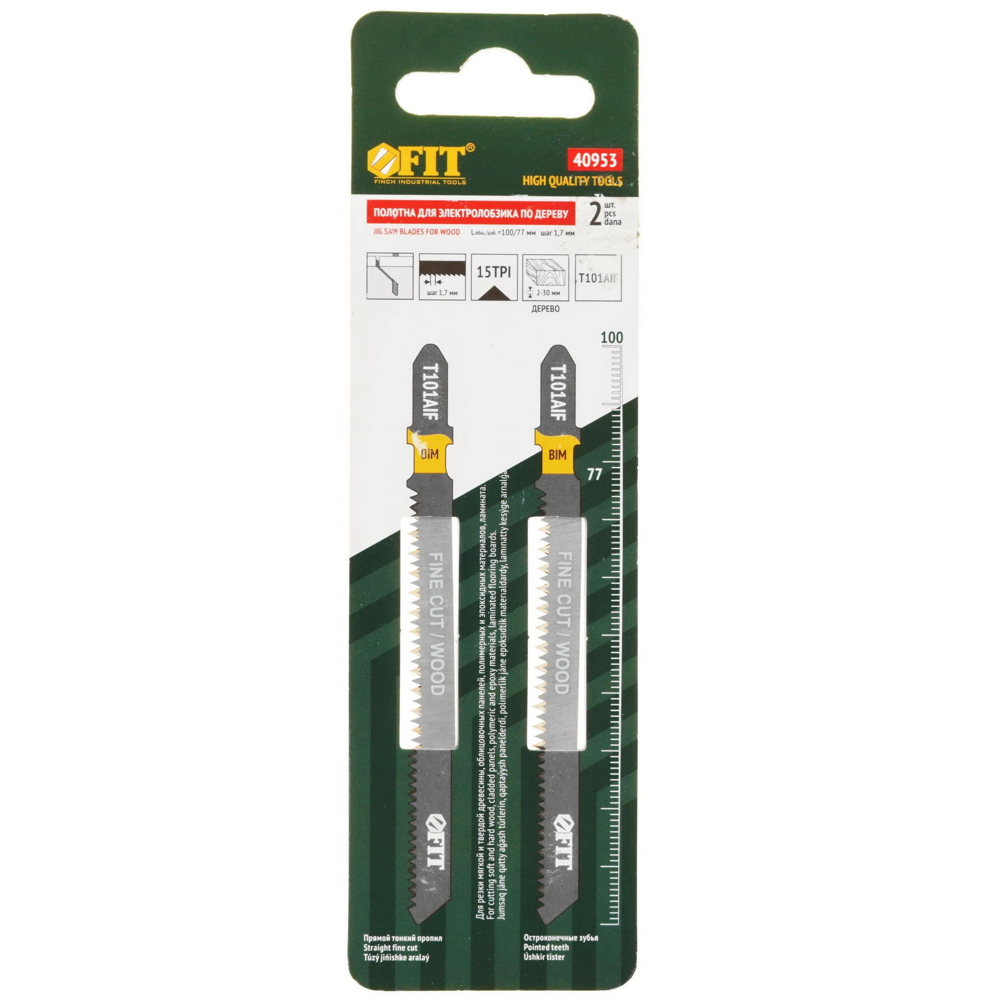 Пилки для лобзика FIT 40953 позволяют работать с мягкой и твердой древесиной, ламинатом, облицовочными панелями, полимерными и эпоксидными материалами. Он совместим с электрическими лобзиками разных производителей, в которых используется T-образный хвостовик. Зубья с шагом 1.7 мм способны справляться с распиливанием материала толщиной от 2 до 30 мм и делать прямой тонкий пропил. Пилки FIT 40953 обладают рабочей длиной 77 мм. Оснастка изготовлена из биметаллического сплава, что гарантирует устойчивость к повреждениям и деформации.