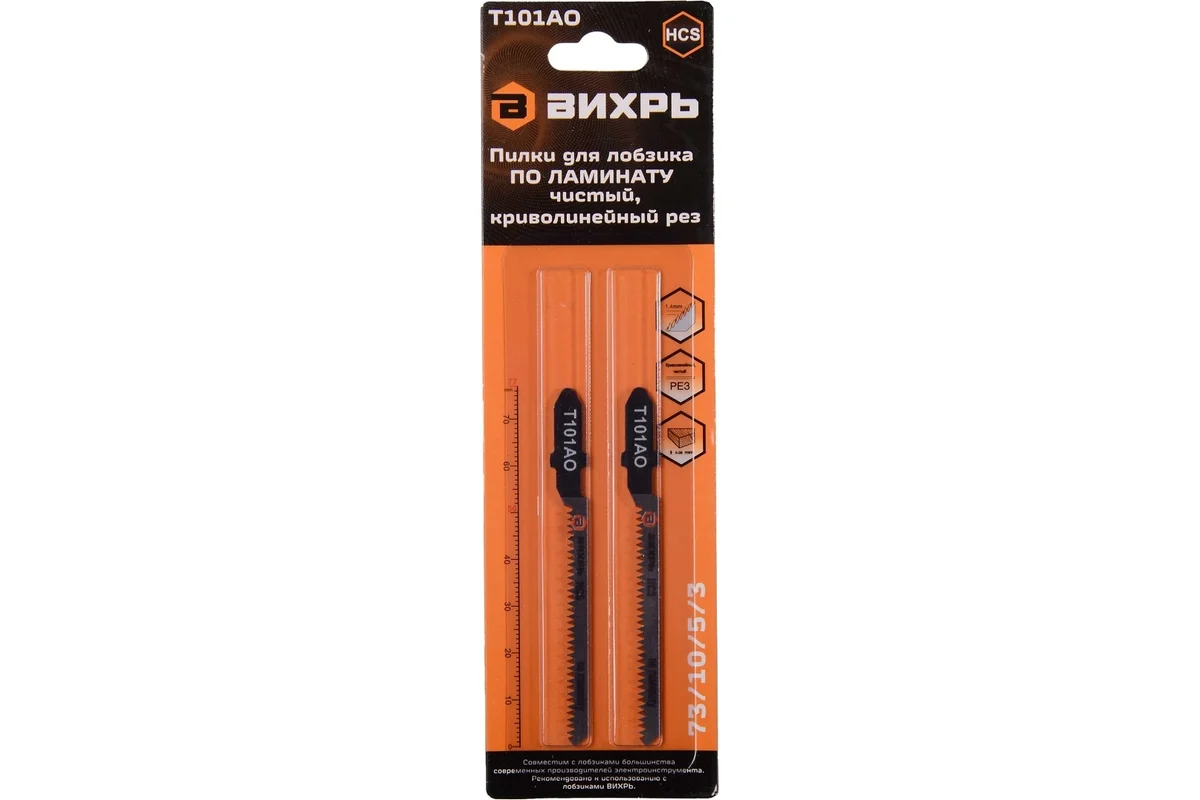 Технические характеристики пилок для лобзика по ламинату Вихрь 73/10/5/3
