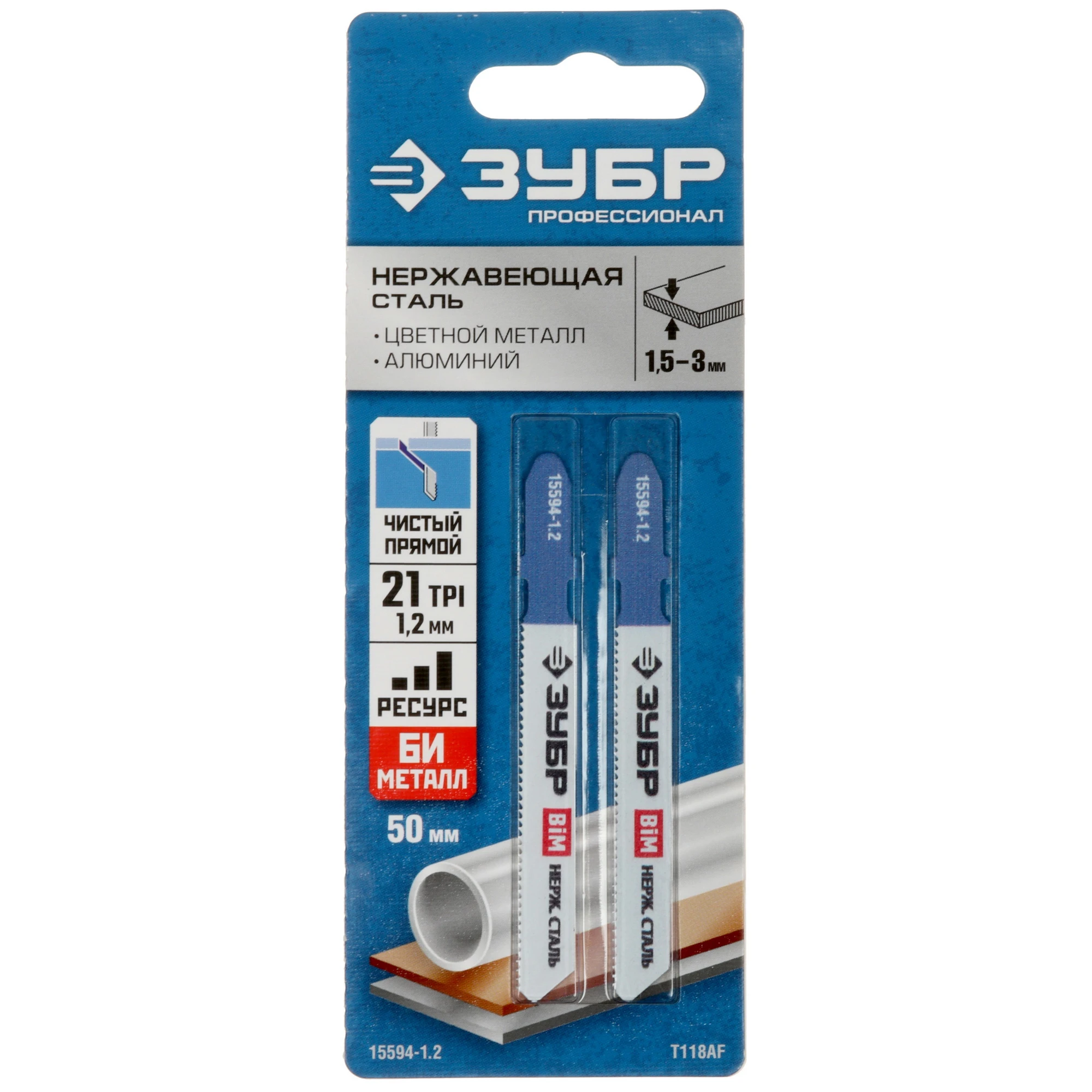 Пилки для лобзика ЗУБР 15594-1.2_z02 выполнены из стали марки BiM. Материал отличает устойчивость к деформации, утрате режущих свойств и появлению ржавчины. Изделия подходят для обработки цветных металлов и алюминия. Т-образный хвостовик делает возможной последующую эксплуатацию аксессуаров с любыми моделями электрических лобзиков.