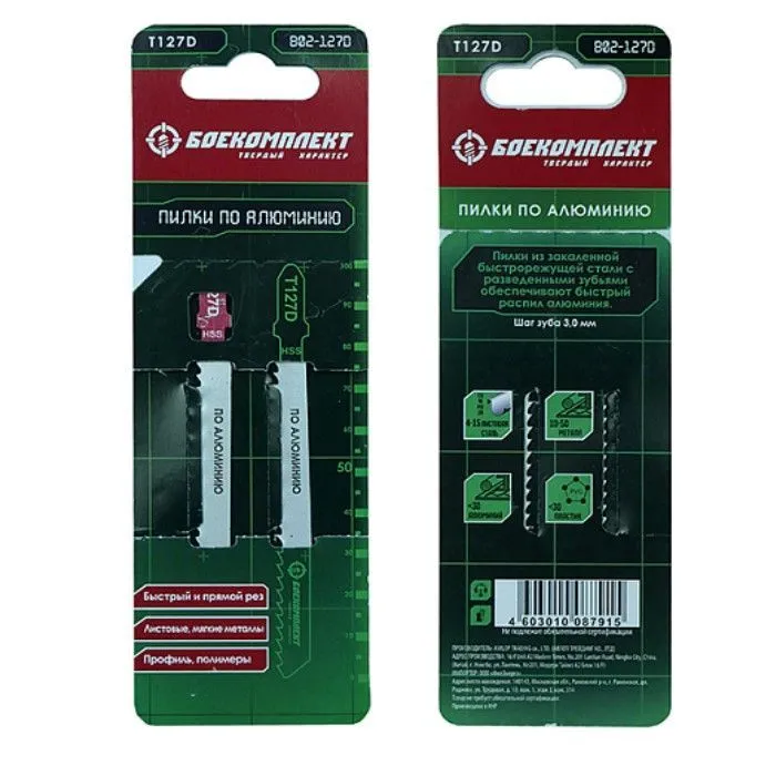 Пилки БОЕКОМПЛЕКТ B02-127D предназначены для электролобзика. Применяются для прямого реза. Обеспечивают быстрый распил алюминия, листовой стали, мягких металлов, профилей труб, полимерных материалов. Изготовлены из закаленной быстрорежущей стали. Пилки имеют разведенные зубья и универсальный Т-образный хвостовик.