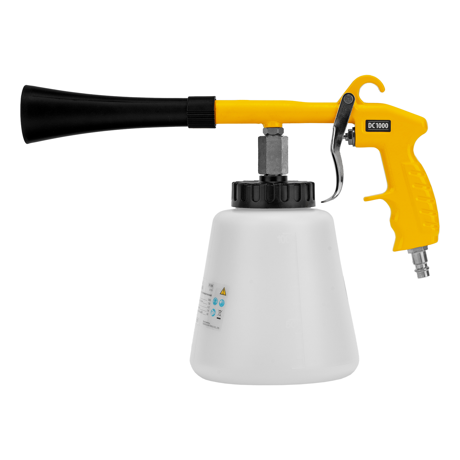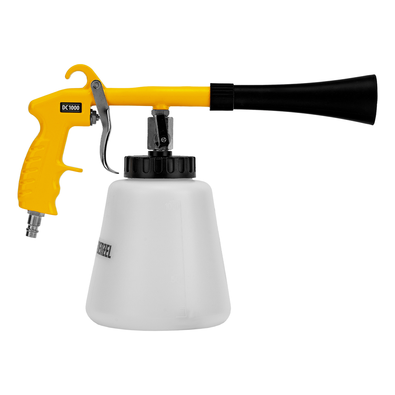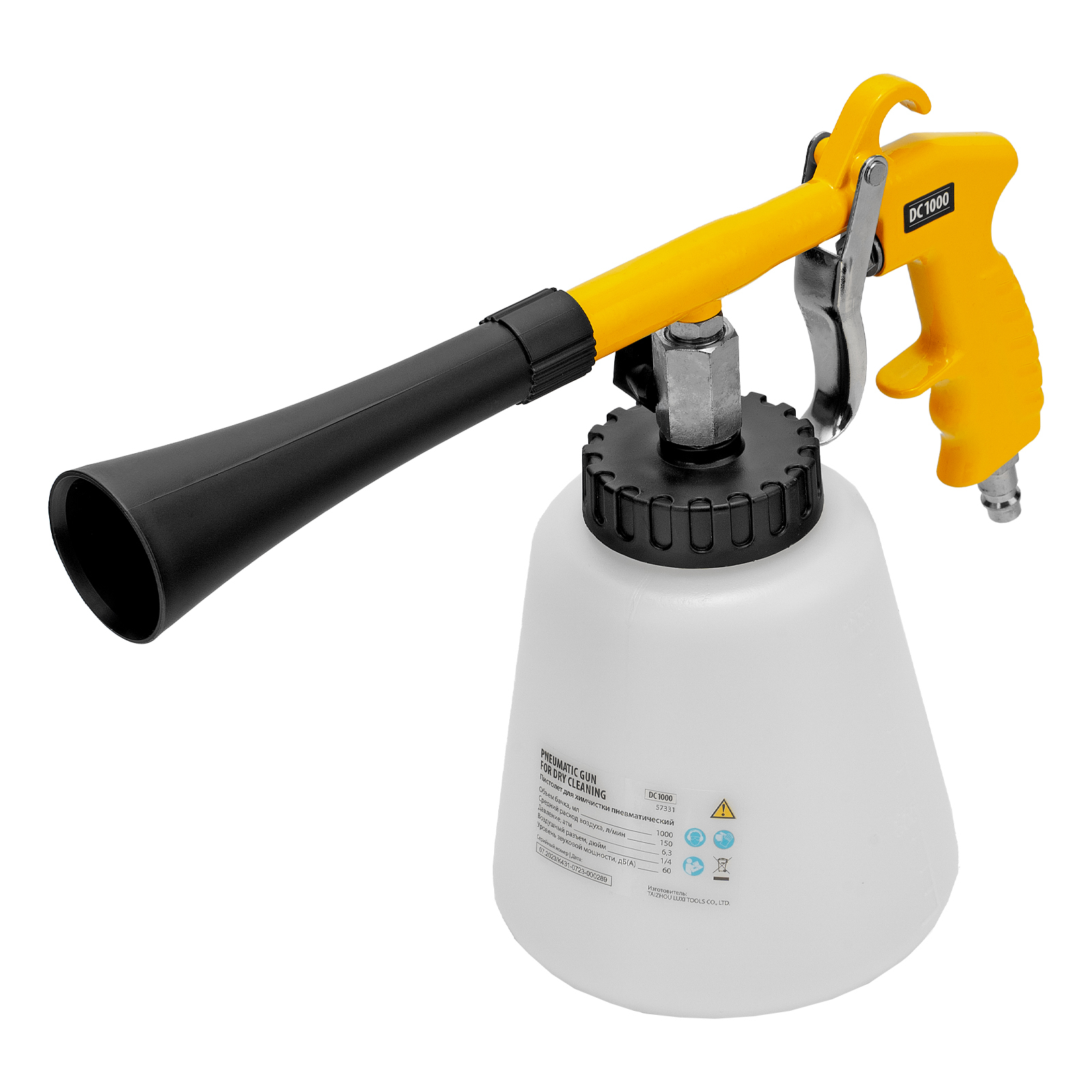 Пневматический пистолет для химчистки Denzel DC1000 57331 предназначен для очищения различных поверхностей: велюра, ткани, пластика, винила и т.д. Поможет удалить загрязнения с обивки сидений в салоне автомобиля, дверных порогов, приборной панели, удобен для обработки труднодоступных мест. Инструмент подходит для сухой и влажной чистки. Частота вращения форсунки составляет 6000 об/мин, что позволяет успешно решать поставленные задачи.