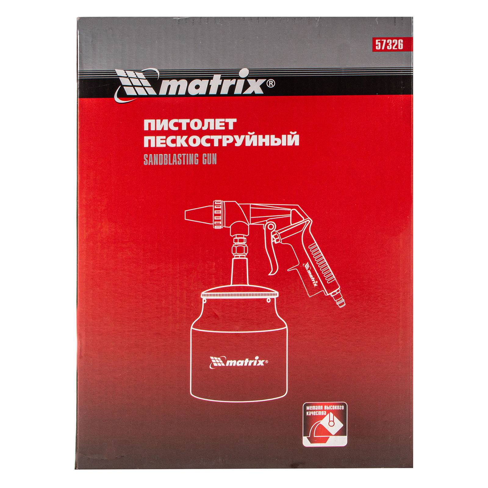 Пескоструйный пистолет Matrix 57326 используется для очищения загрязненных поверхностей, удаления краски, очагов коррозии и ржавчины с помощью кварцевого песка или специального абразива размером до 1,6 мм. Встроенный бачок для песка объемом 1000 мл делает пистолет мобильным и избавляет мастера от необходимости присоединять дополнительный шланг.