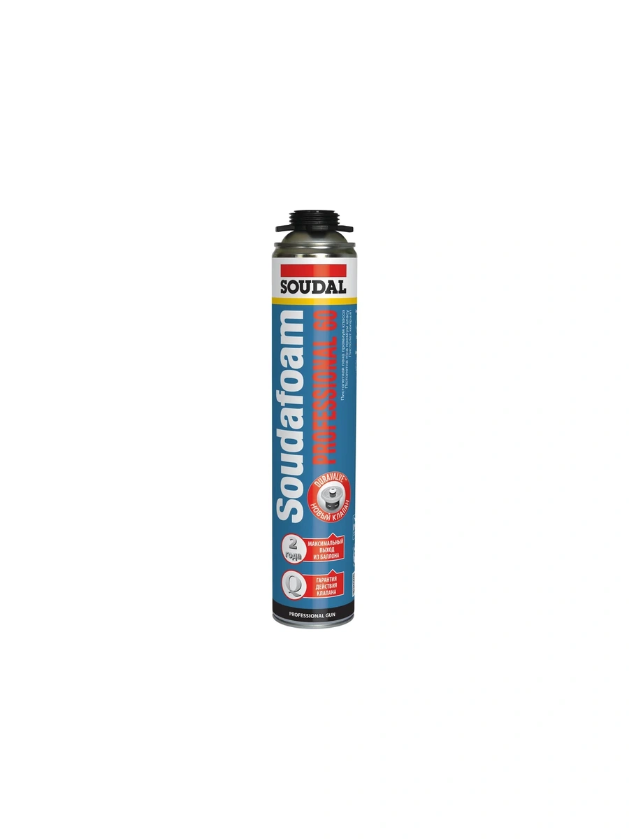 Монтажная герметизирующая пистолетная пена высокого качества с выходом до 60 л, с превосходной адгезией к большинству строительных материалов.