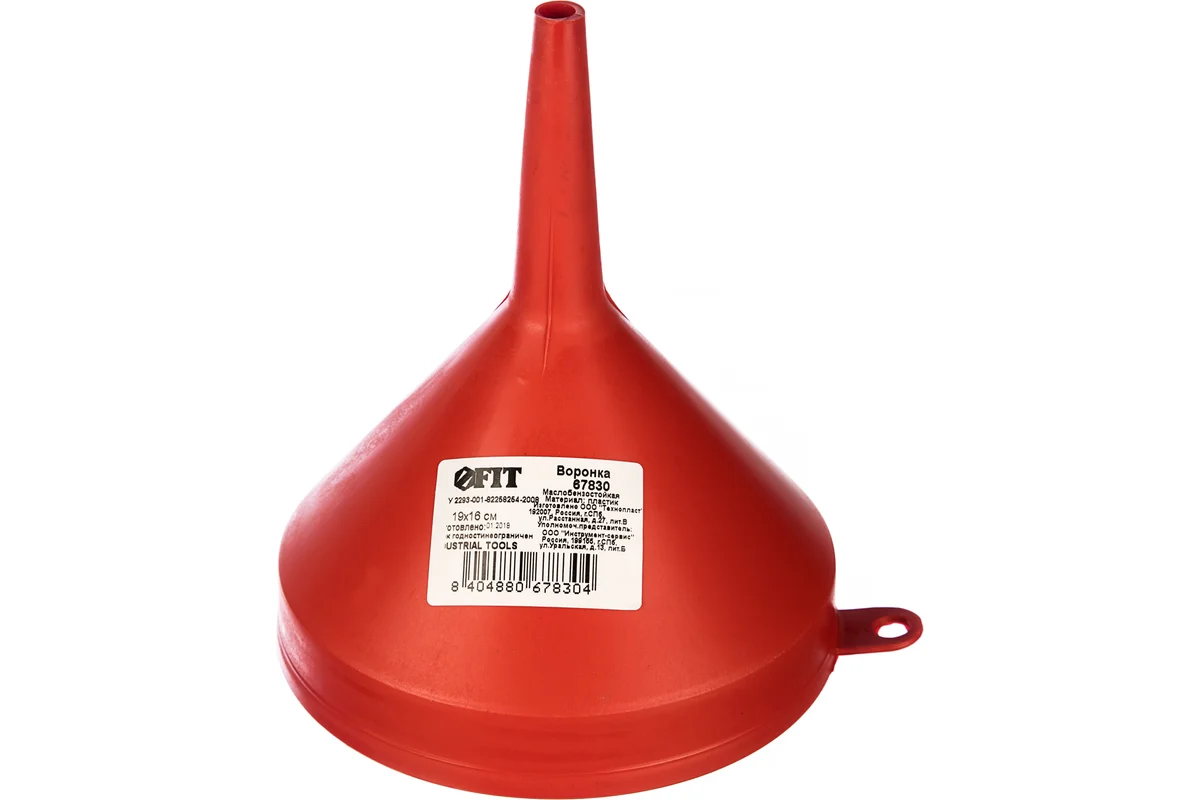 Пластиковая воронка 19х16см FIT РОС 67830 используется для переливания жидкостей в емкости с тонким горлышком или для заливания горючих материалов в бак автомобиля. Выполнена в форме конуса с трубкой на конце и отверстием для подвешивания. Корпус изготовлен из пластика, масло- и бензостойкого. Является простым и удобным приспособлением, которое можно брать с собой в дорогу и хранить в багажнике.
