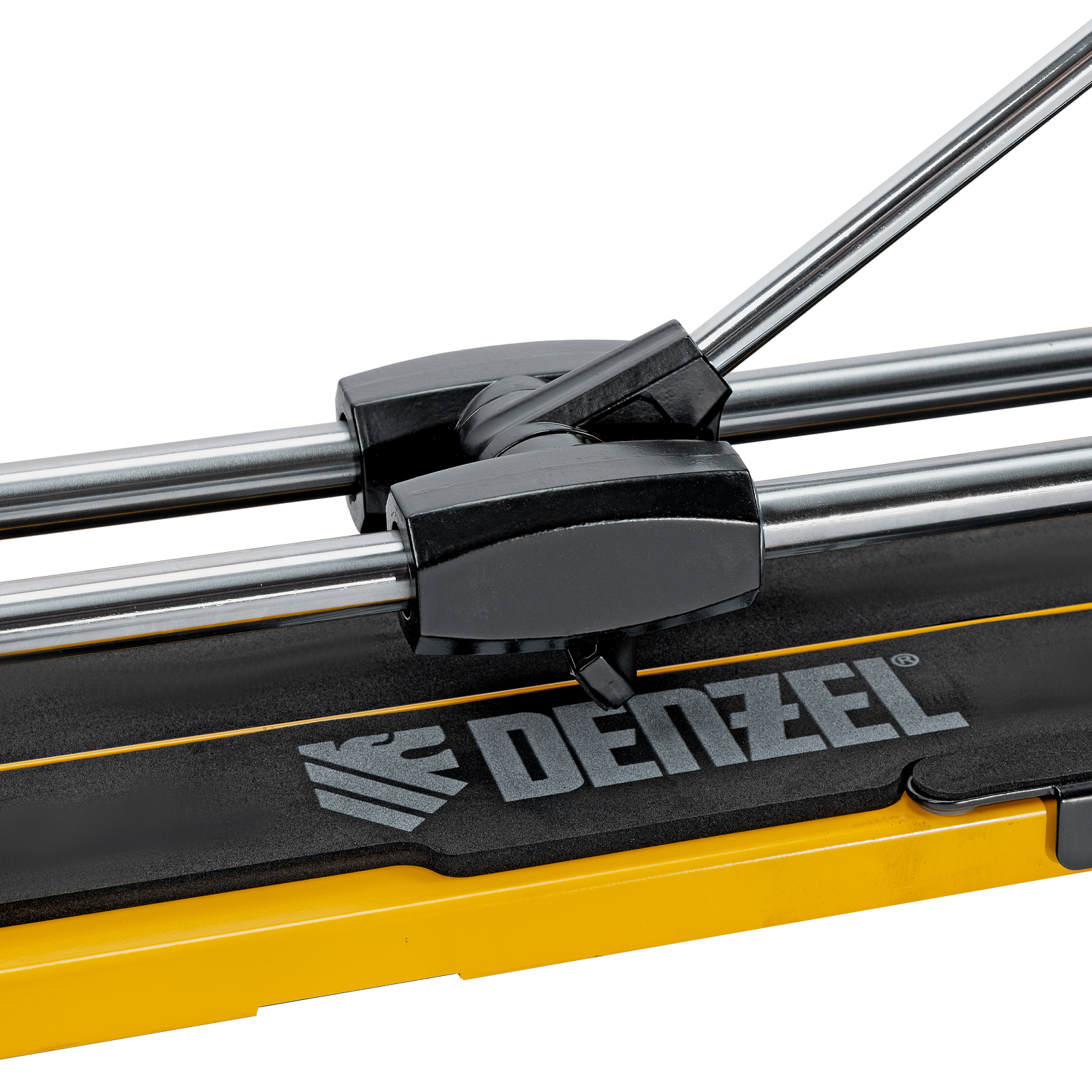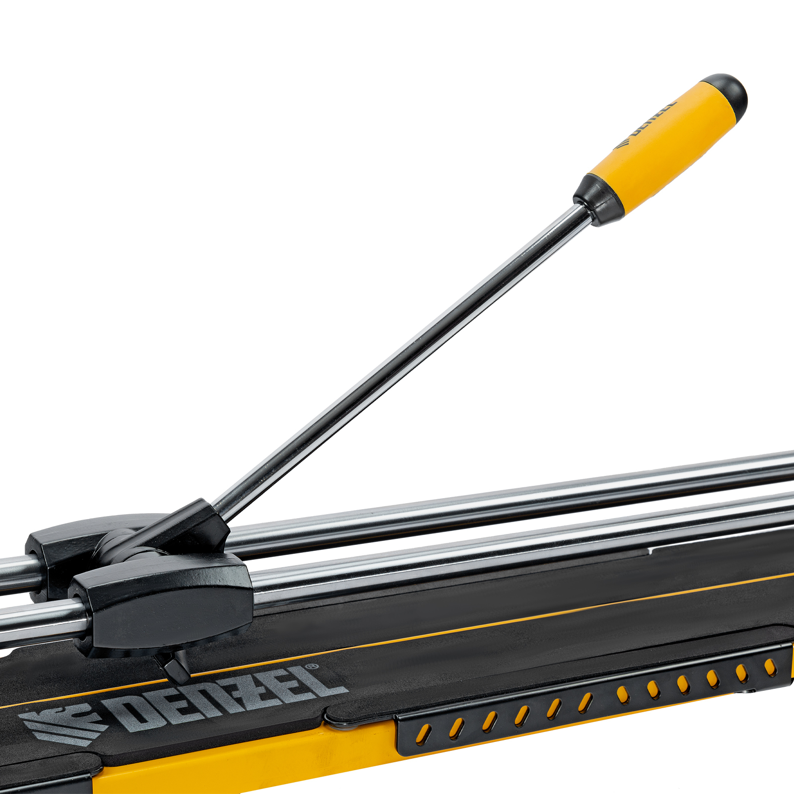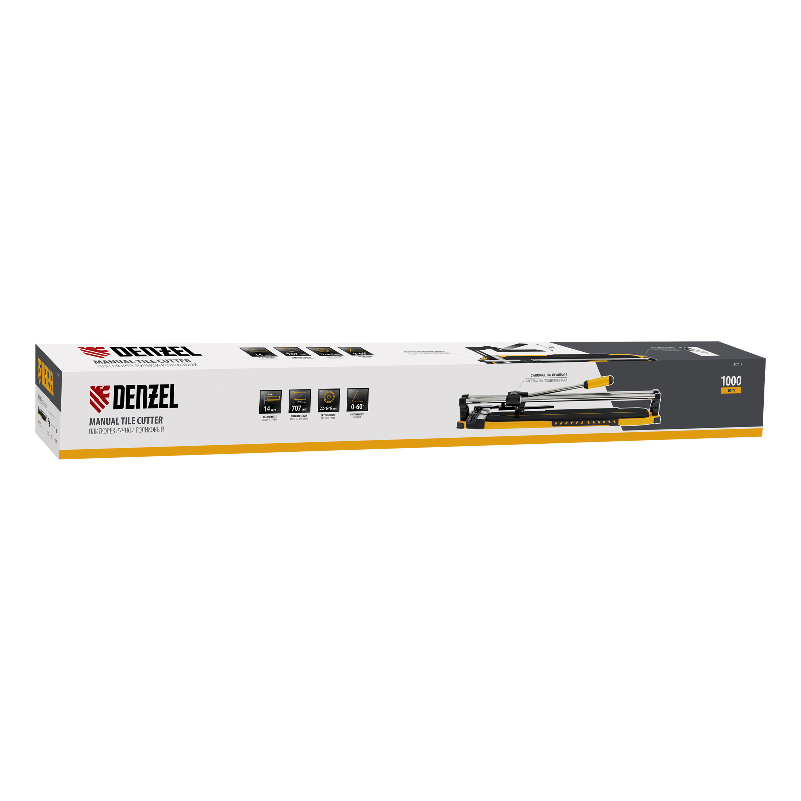 Ручной плиткорез Denzel 877012 с цельнометаллическими направляющими и стальной станиной, с кареткой на подшипниках и рукояткой-пеналом, предназначен для прямой и диагональной резки керамической плитки и керамогранита длиной до 1000 мм и толщиной до 14 мм. Раздвижные упоры упрощают работу с плиткой большого размера. Инструмент используется для проведения отделочных работ.