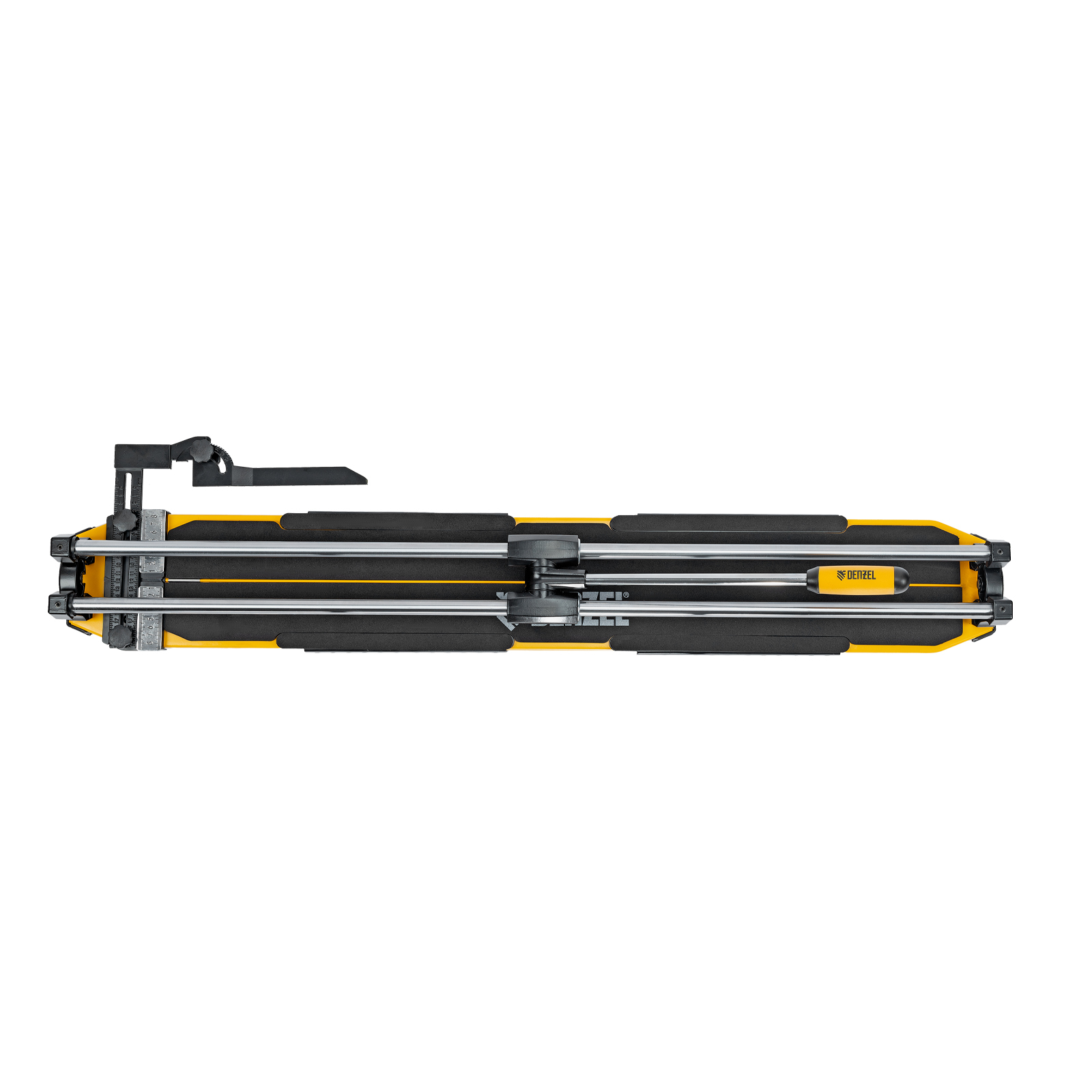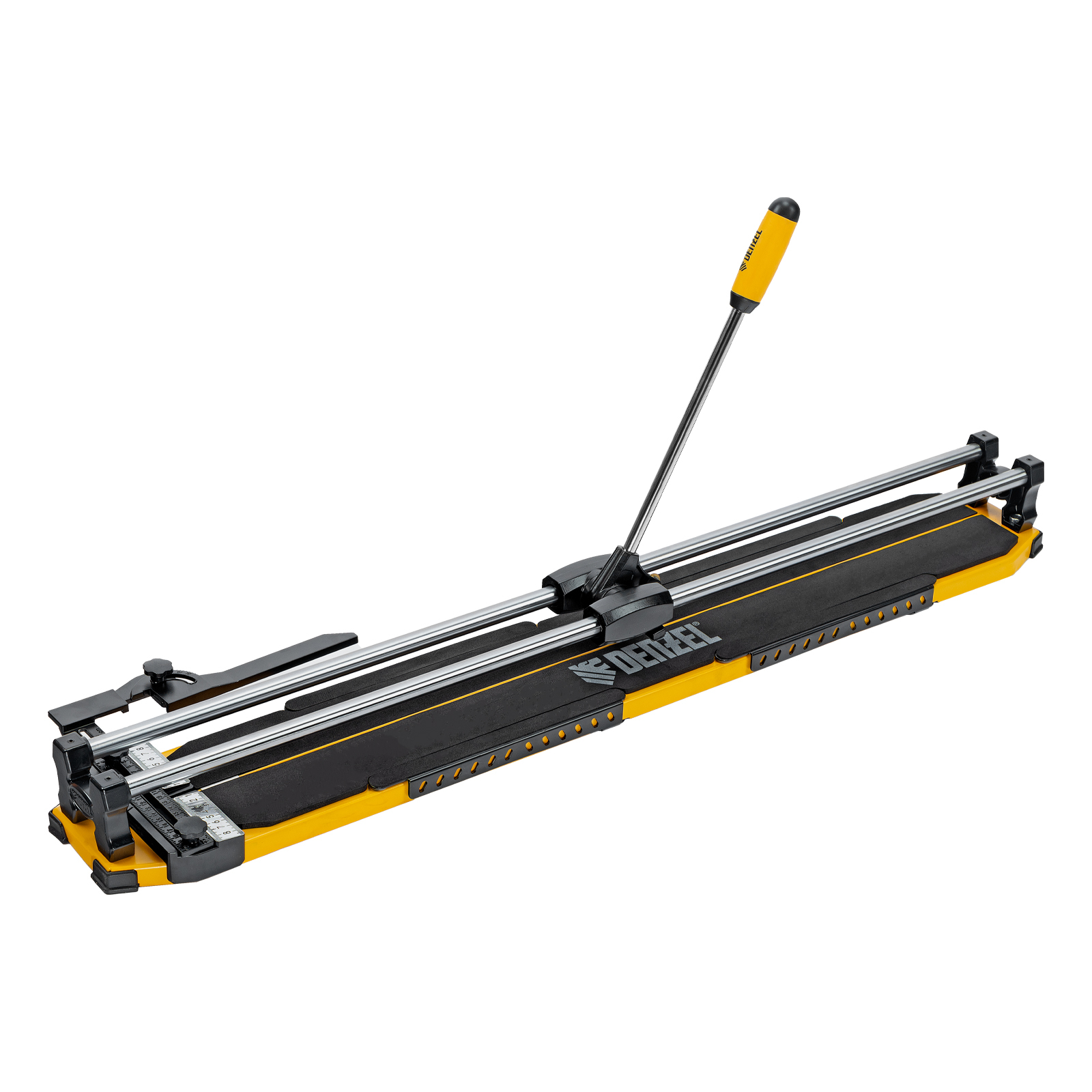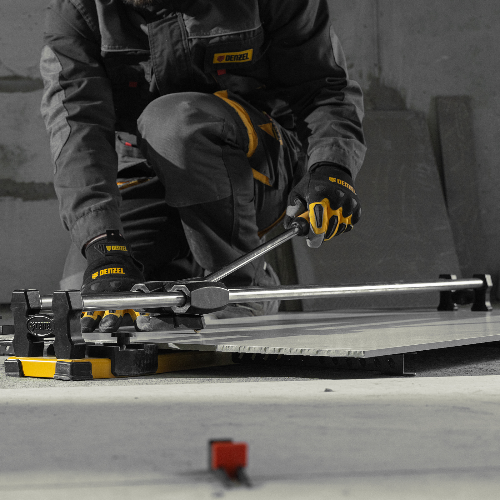Ручной плиткорез Denzel 877012 с цельнометаллическими направляющими и стальной станиной, с кареткой на подшипниках и рукояткой-пеналом, предназначен для прямой и диагональной резки керамической плитки и керамогранита длиной до 1000 мм и толщиной до 14 мм. Раздвижные упоры упрощают работу с плиткой большого размера. Инструмент используется для проведения отделочных работ.