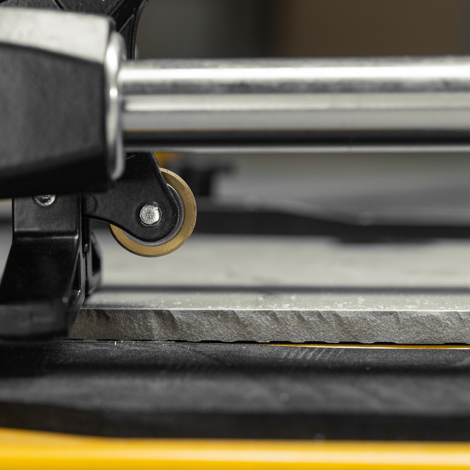 - Удобная работа — благодаря противоскользящим накладкам плиткорез не смещается даже на гладких поверхностях.