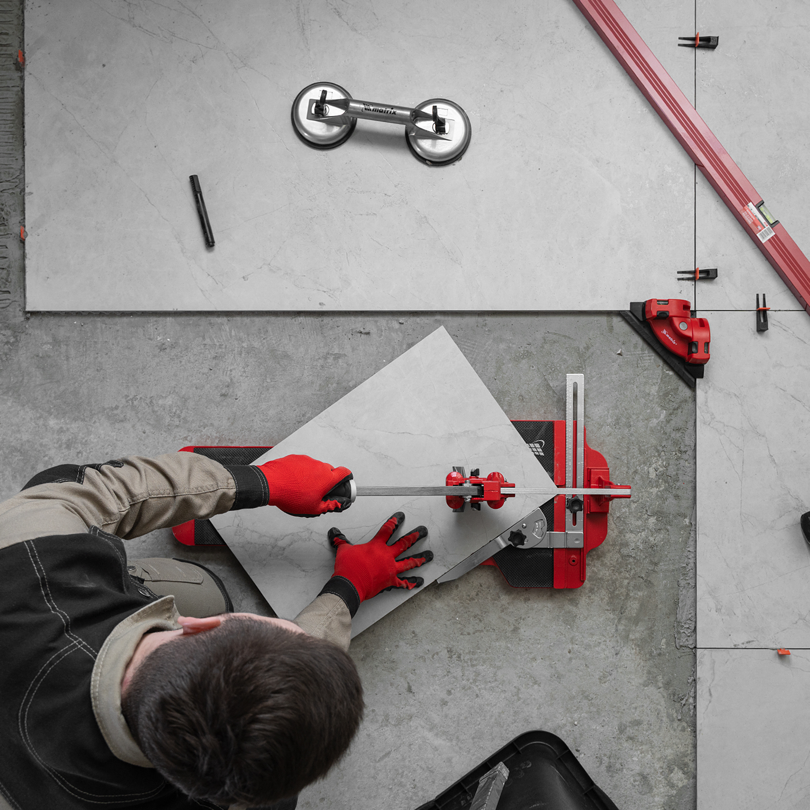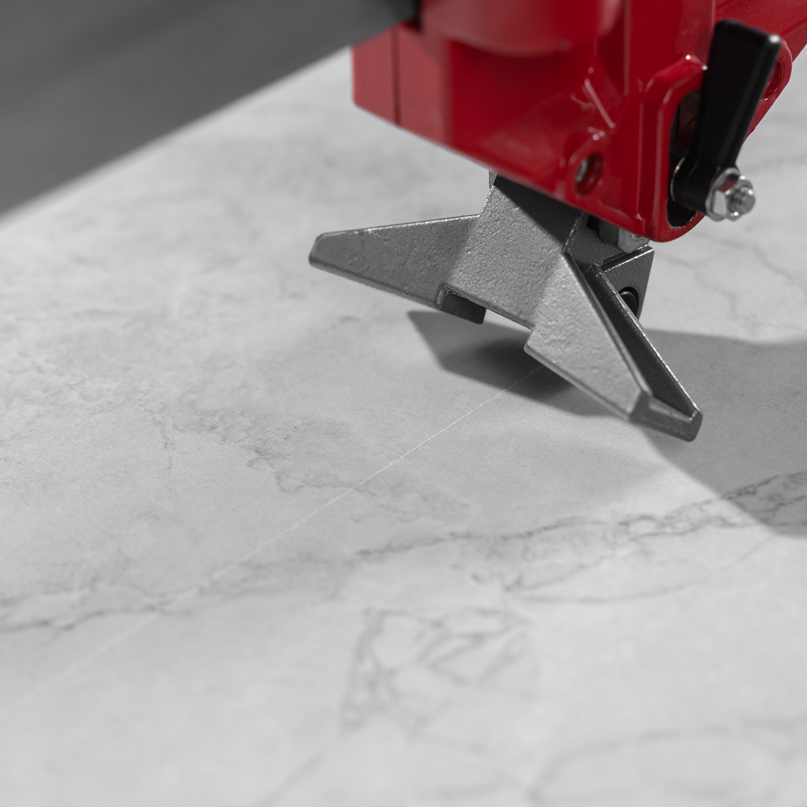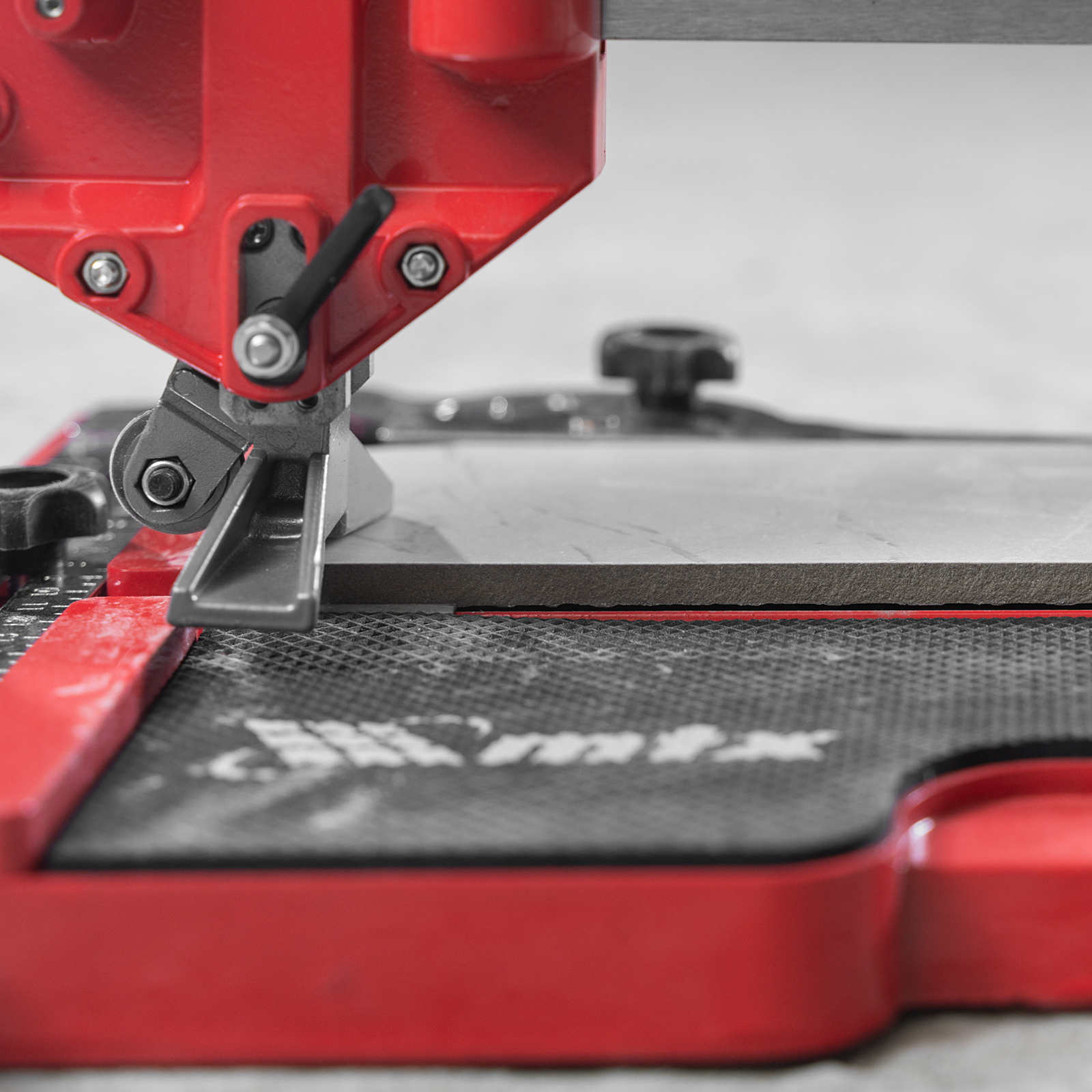 - Надежная фиксация плитки — амортизирующие накладки не дают ей смещаться во время реза.