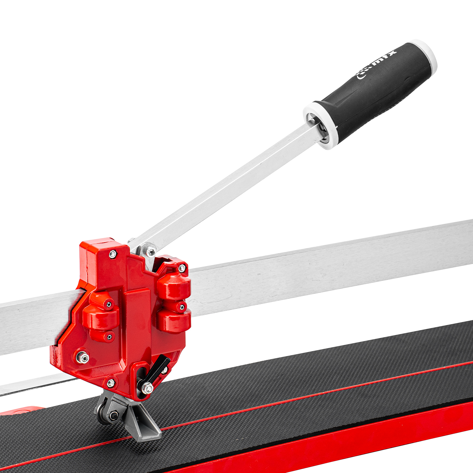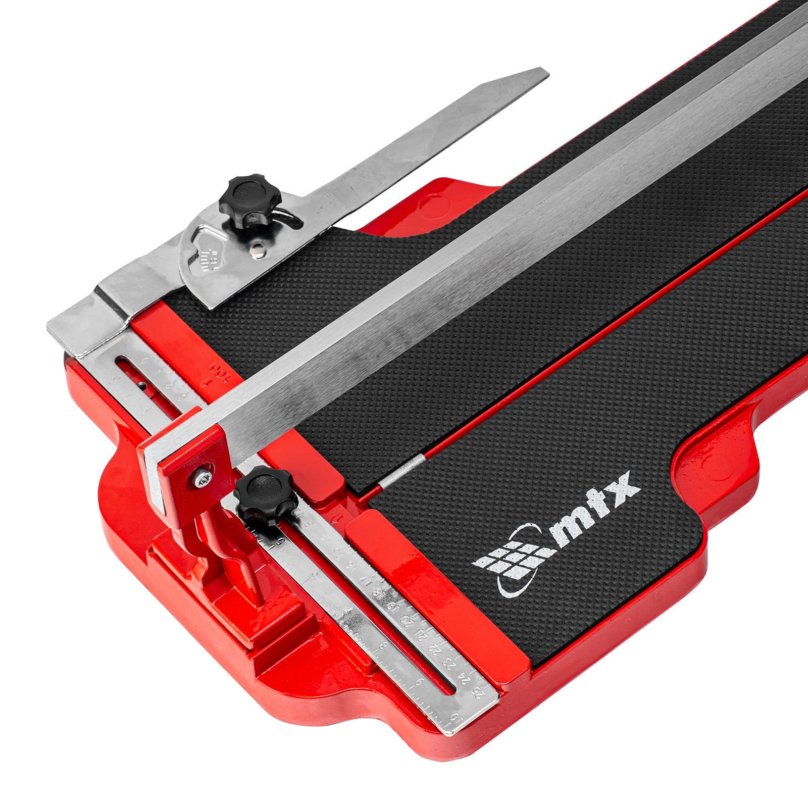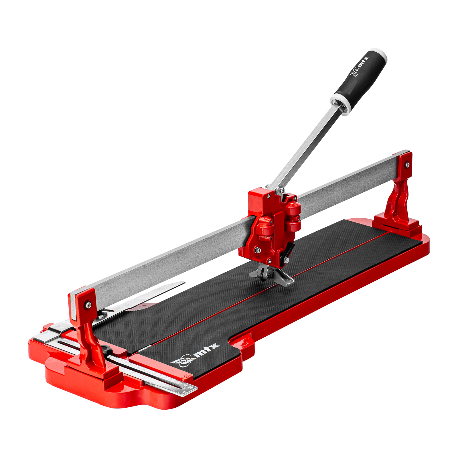 Ручной монорельсовый плиткорез MTX 87591 с ходовой кареткой, с 4 регулируемыми подшипниками из 9 и литой станиной, применяется для резки плитки размером до 600 х 14 мм. Плиткорез оснащен усиленным стальным монорельсом и опорами. Ролик из твердого сплава ВК8 на подшипниках обеспечивает максимальное качество реза. Мощный разделитель позволяет эффективно резать любую плитку: керамическую и керамогранитную.