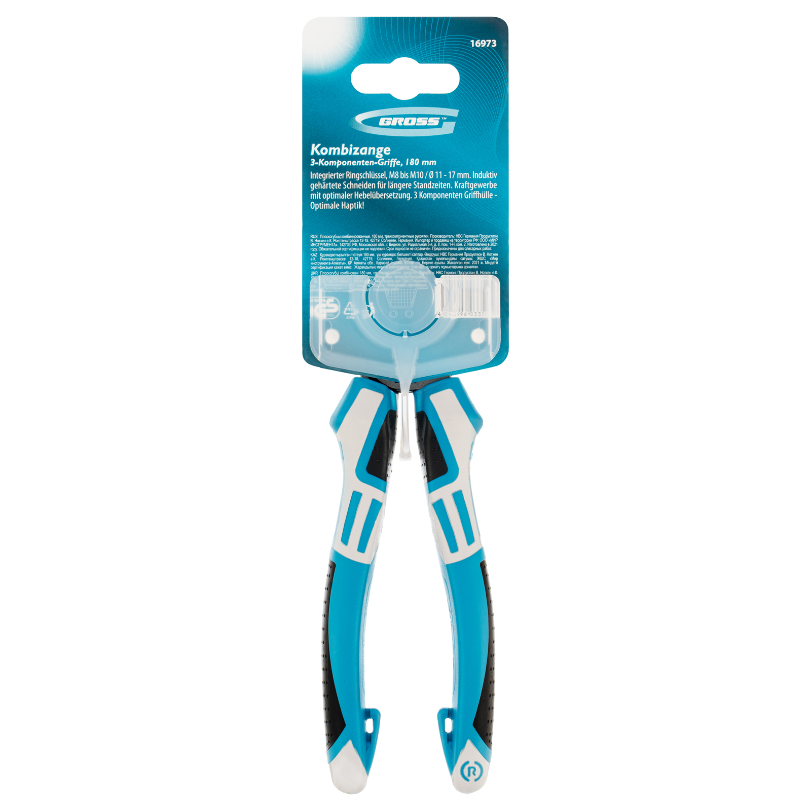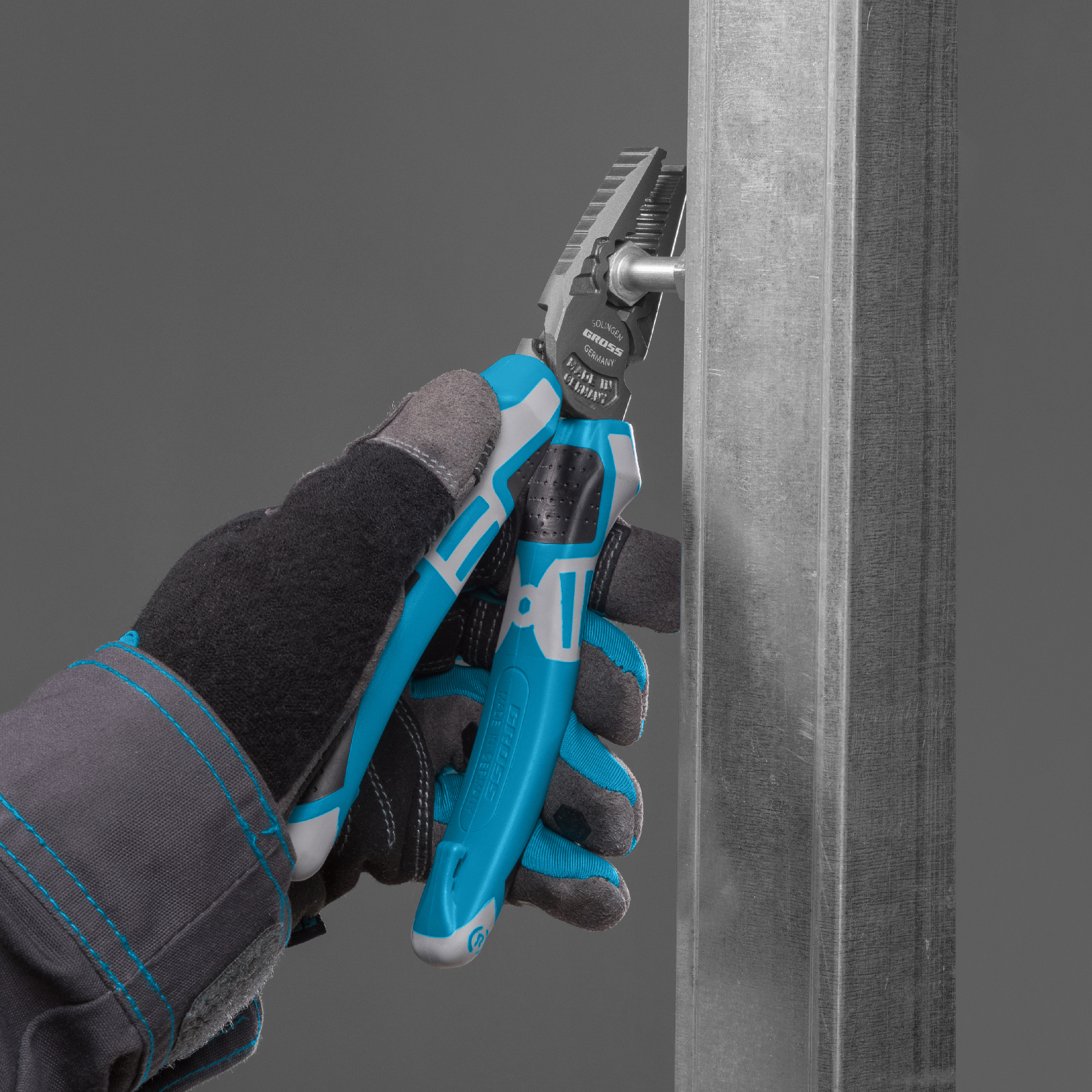 Комбинированные плоскогубцы Gross 16973 длиной 180 мм, с трехкомпонентными рукоятками, используются для перекусывания мягкой и жесткой проволоки, сгибания металлических листов и захвата деталей. Благодаря специальным внутренним граням возможно применение инструмента в качестве гаечного ключа. Плоскогубцы пригодятся профессионалам и частным мастерам для проведения слесарных, строительных и монтажных работ.