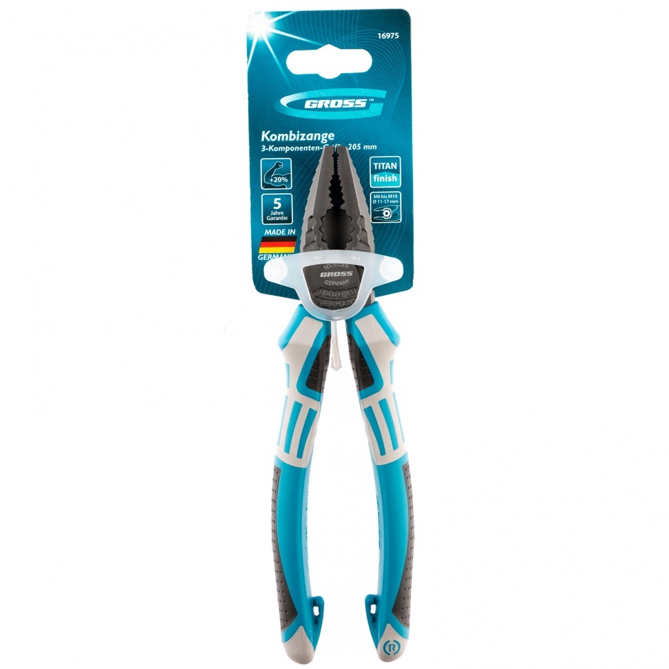 Комбинированные плоскогубцы Gross 16975 длиной 205 мм, с трехкомпонентными рукоятками, используются для перекусывания мягкой и жесткой проволоки, сгибания металлических листов и захвата деталей. Благодаря специальным внутренним граням возможно применение инструмента в качестве гаечного ключа. Плоскогубцы пригодятся профессионалам и частным мастерам для проведения слесарных, строительных и монтажных работ.