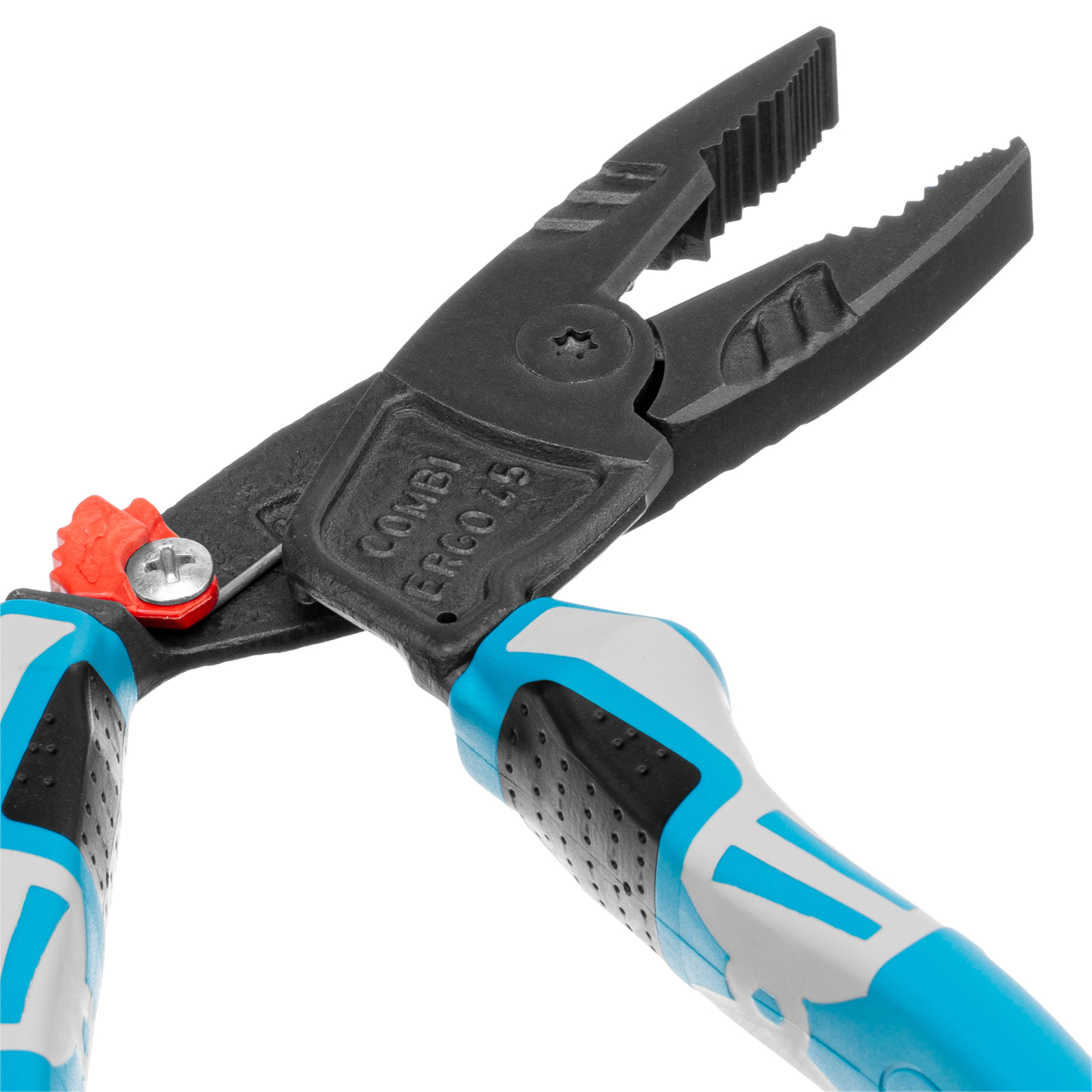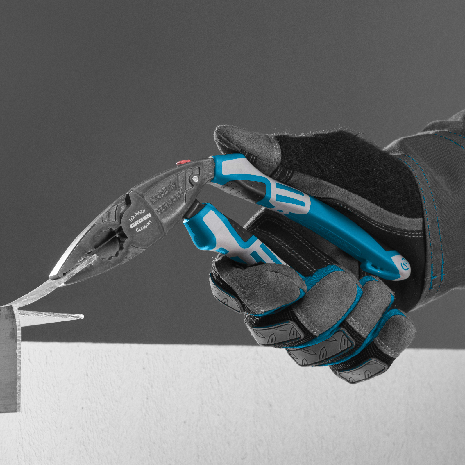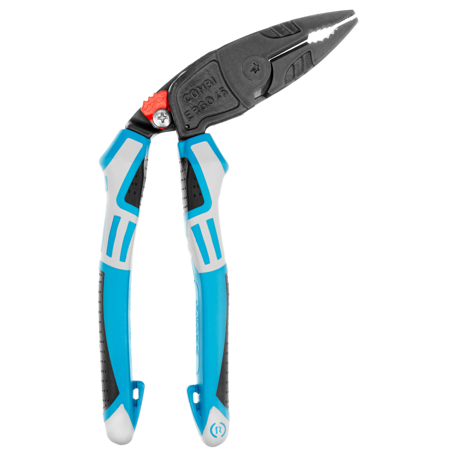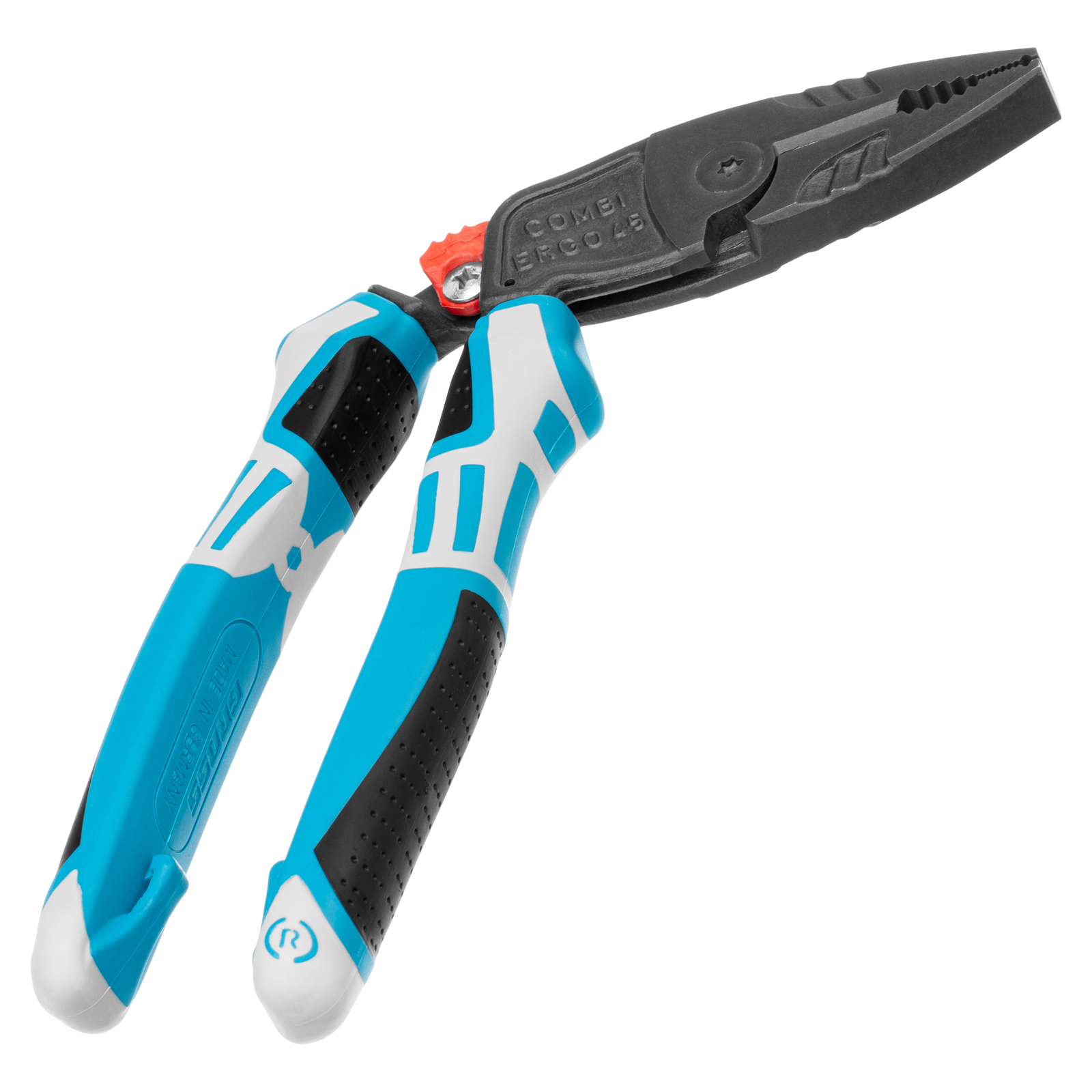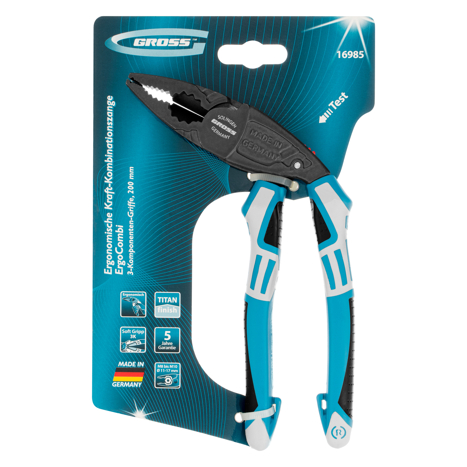 Комбинированные плоскогубцы с изогнутой головой Gross 16985 длиной 200 мм оснащены удобными трехкомпонентными рукоятками. Инструмент помогает захватывать крупные и мелкие детали или сгибать металлические листы, а благодаря специальным граням на рабочей части его можно использовать в качестве гаечного ключа. Специальные пазы на губках позволяют удерживать гвозди или проволоку во время работы. Рукоятки обладают диэлектрическими свойствами, однако техника безопасности запрещает работать под напряжением!