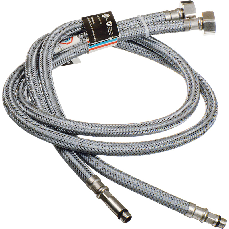 Подводка для смесителя гибкая (ПАРА) в оплетке нейлон РА6, внутренний шланг EPDM. Фитинги из нержавеющей стали, прокладки EPDM.