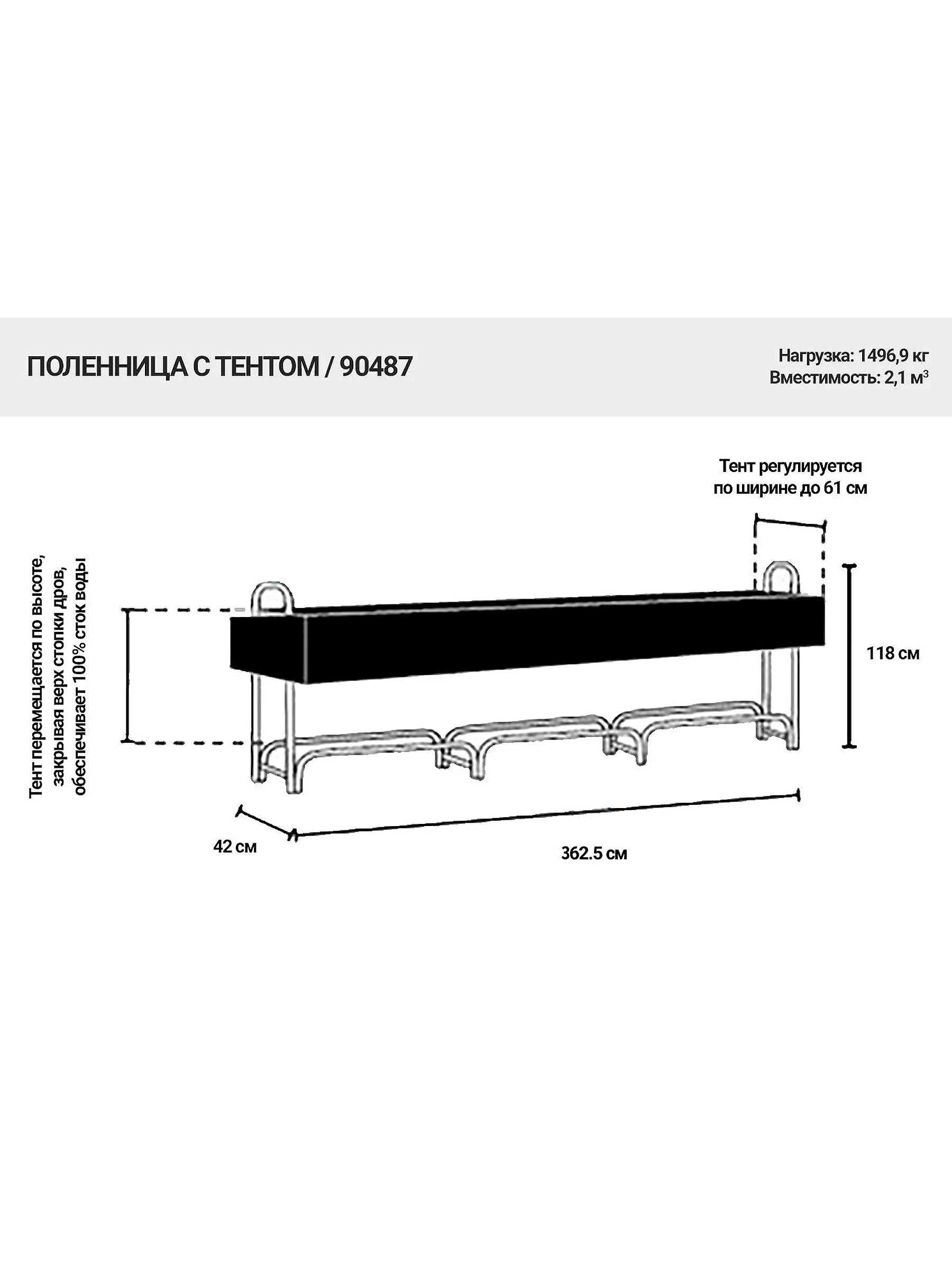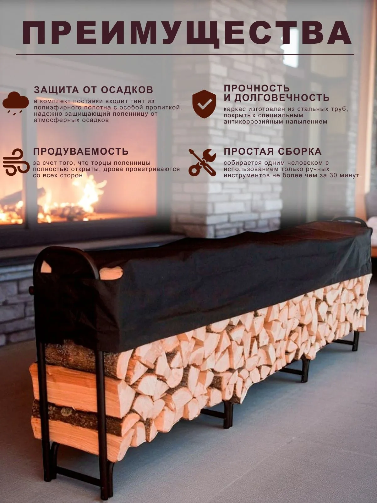 Высокопрочный каркас не прогибается под весом большого количества дров, допустимая нагрузка 997,9 кг.
