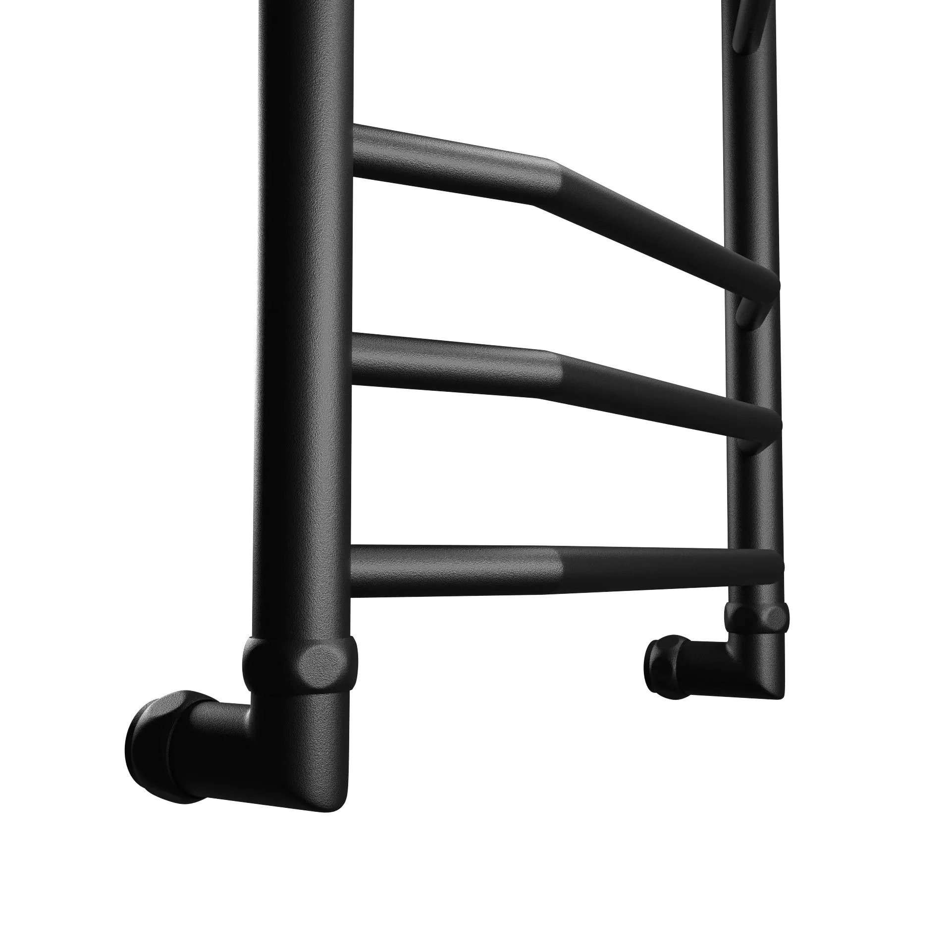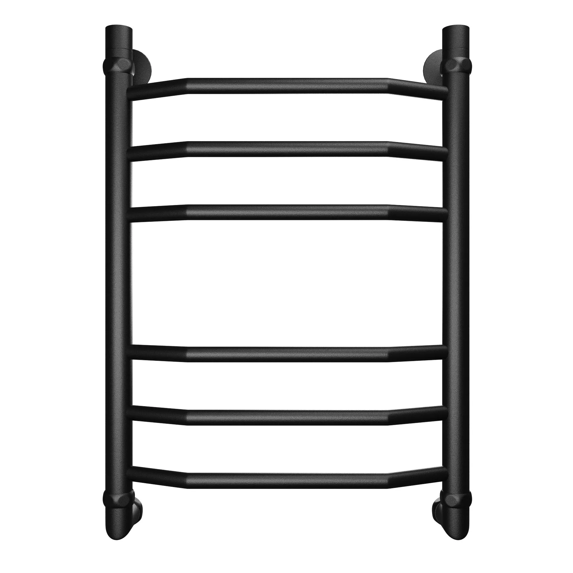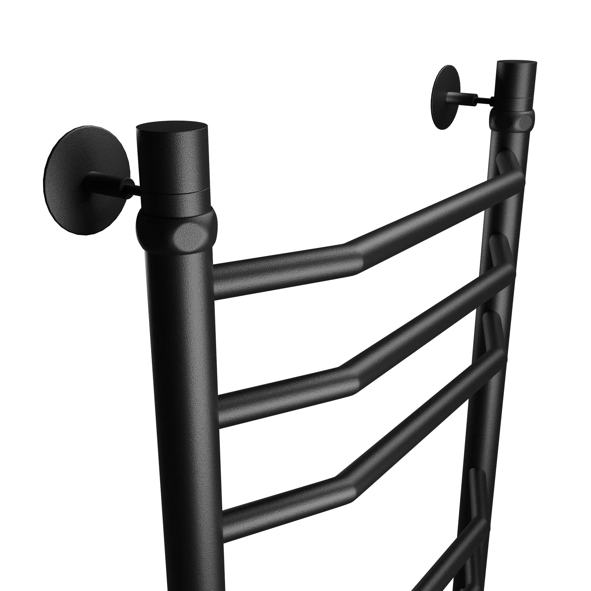 Полотенцесушитель водяной черный для ванной комнаты, из нержавеющей стали, лесенкой. Установка осуществляется к системе горячего водоснабжения, нижнее/вертикальное/диагональное подключение. Змеевик изготовлен из пищевой нержавеющей стали марки AISI 304 — износостойкой и не подверженной коррозии, легко выдерживающей агрессивную среду систем отопления, ЧТО ПОДТВЕРЖДЕНО СЕРТИФИКАТОМ СООТВЕТСТВИЯ. Сварной шов конструкции выполнен лазерным способом, гарантирует высокое качество, долговечность и работоспособность. Сушилка в ванную из нержавеющей стали марки Di Kron имеют гораздо больший запас прочности, чем это необходимо в обычных условиях эксплуатации, изделия испытываются при давлении 15 атм. Поверхность черного матового цвета влагостойкая, не тускнеет и не темнеет со временем. Все водяные полотенцесушители для ванной комнаты из нержавеющей стали качества Premium и оснащены полным комплектом для монтажа. Торцы труб имеют толстостенную заводскую вальцовку, во время установки достаточно использовать силиконовые прокладки которые поставляются в комплекте с изделием. Гарантия напрямую от завода 5 лет, подтверждается гарантийным талоном. Служба поддержки клиентов всегда поможет с решением вопросов связанных с полотенцесушителем, подробную информацию о способах связи вы найдете в гарантийном паспорте который поставляется вместе с изделием.