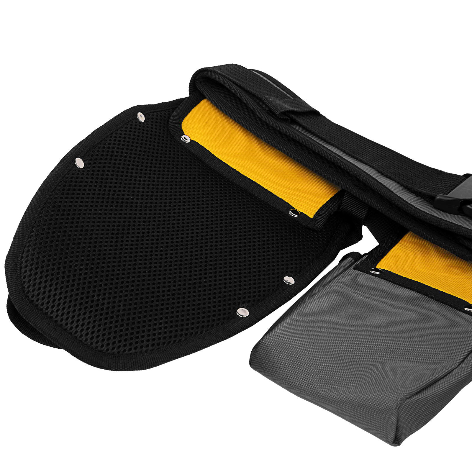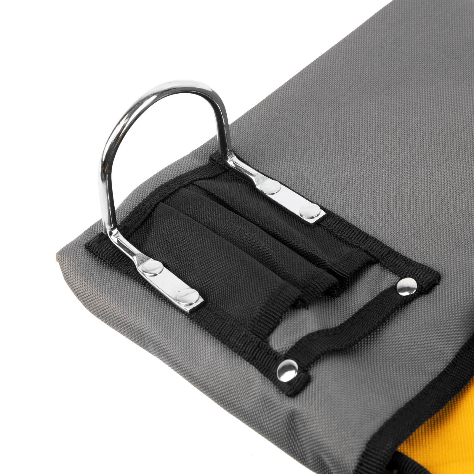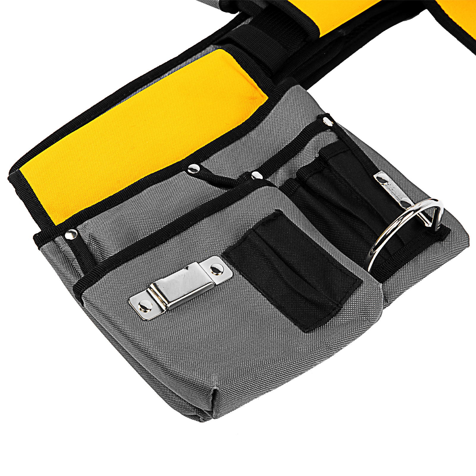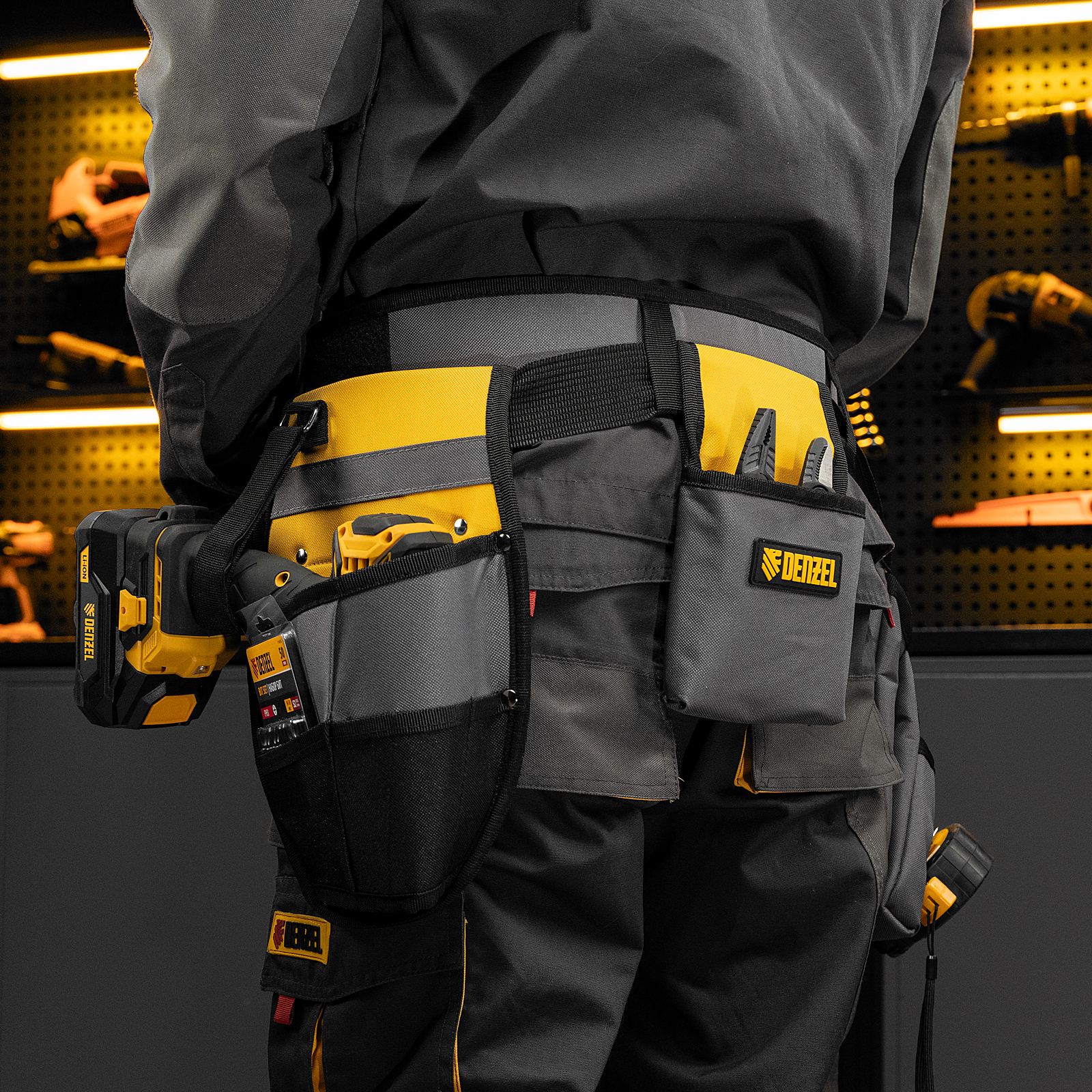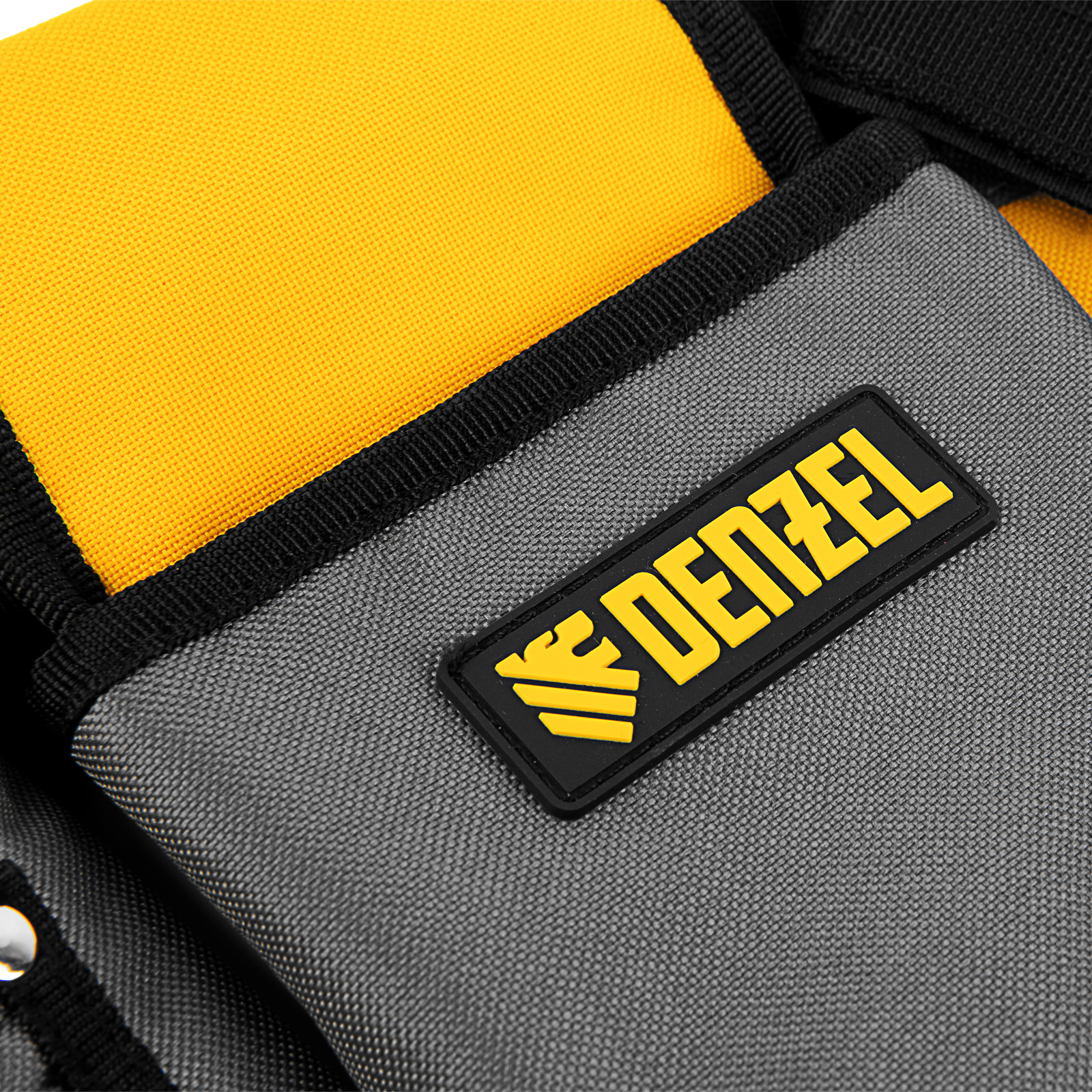 Пояс монтажника Denzel 90291 с поясными сумками и кобурой для шуруповерта позволяет иметь все необходимые инструменты под рукой во время высотных монтажных работ или решения других задач. В 14 карманах и дополнительном подсумке можно разместить инструменты, крепеж и расходники. Для шуруповерта предусмотрена специальная кобура со страховочной петлей.