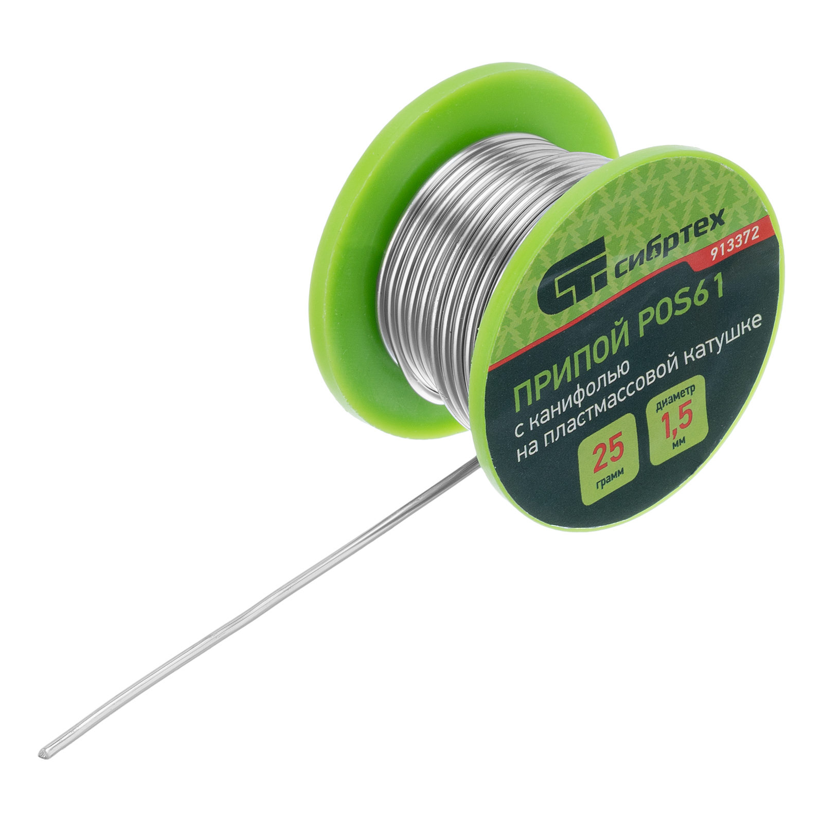 Припой с канифолью POS61 Сибртех 913372 диаметром 1,5 мм и весом 25 г, на пластмассовой катушке, — сплав, использующийся для пайки электронных деталей и проводов. Будет полезен для монтажа и ремонта электронной техники в профессиональной и частной сфере.