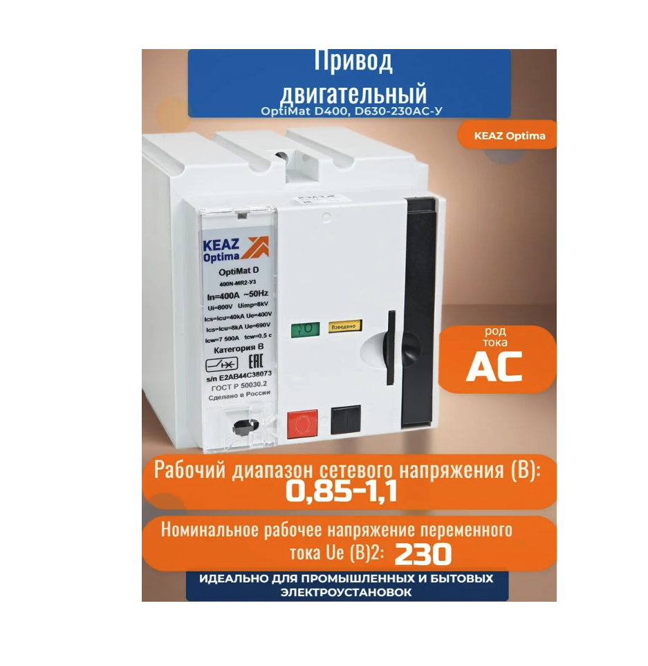 Номинальное напряжение питания цепи управления Us (В): 230AC
