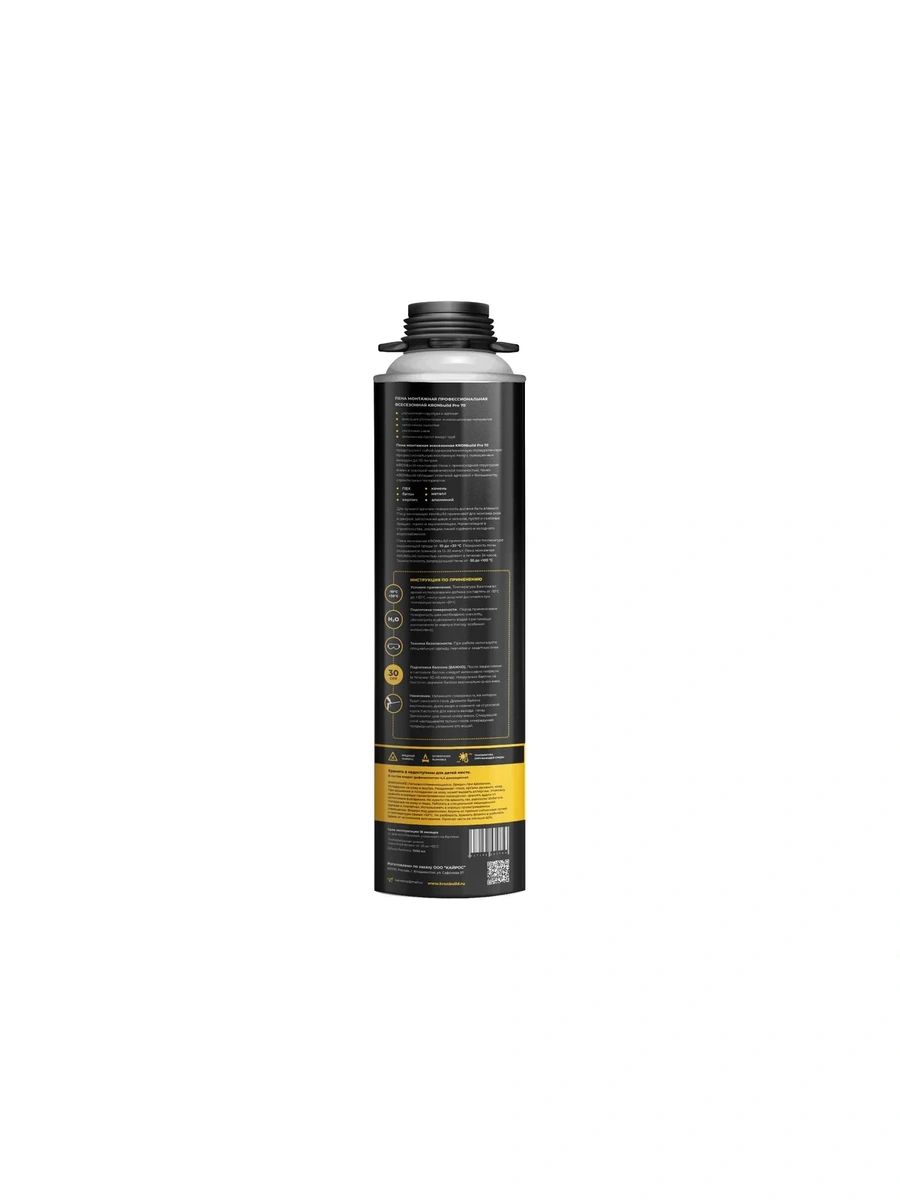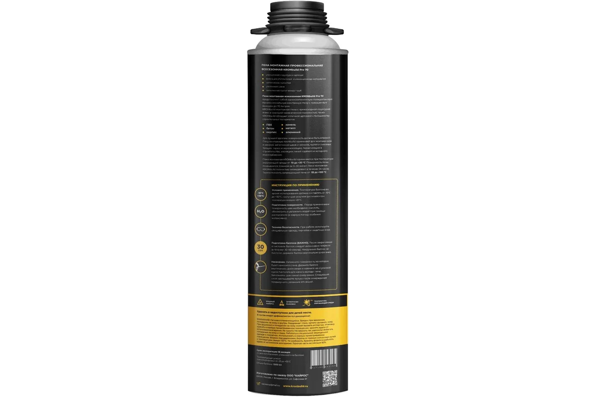 KRONbuild Pro монтажная пена с превосходной структурой ячеек и хорошей механической прочностью, данная линейка монтажной пены. Данную пену можно использовать всесезонно, так как она работает от - 10 и до +30.
