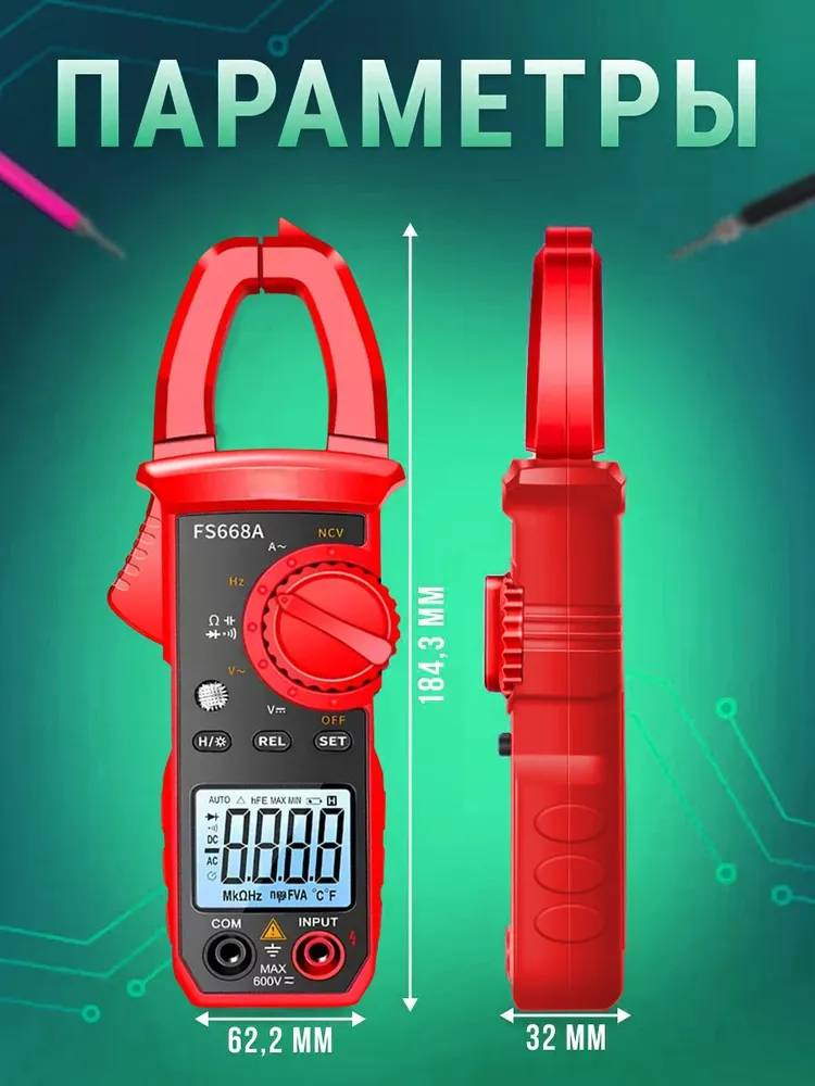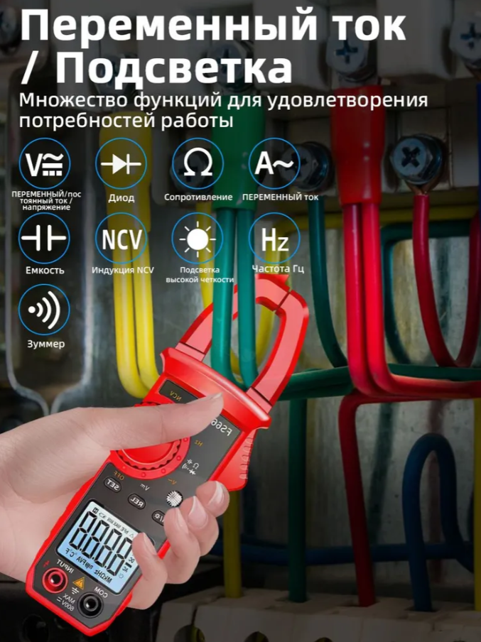 Токовые клещи может измерять только переменный ток (не постоянный ток), переменное и постоянное напряжение, сопротивление, емкость, непрерывность, диод и частоту (Гц), живой/нулевой провод; цифровой клемметр является идеальным инструментом для устранения неисправностей амперметра, вы можете точно устранить неисправности автомобиля или внутренние электрические проблемы в доли времени и получить работу, выполненную более эффективно.