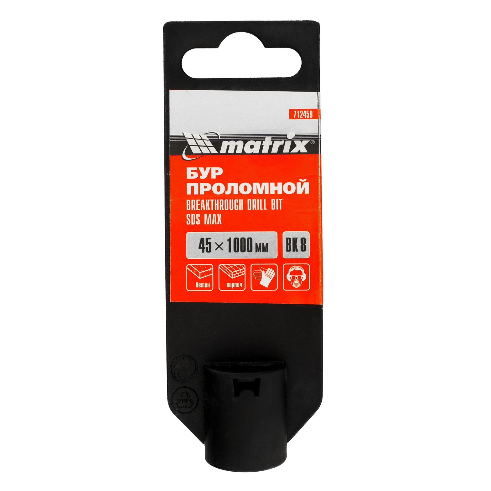 Проломной бур Matrix 712459 с хвостовиком SDS MAX позволяет получать сквозные отверстия диаметром 4,5 см и длиной 100 см в стенах из кирпича и бетона, полах, перекрытиях. Применяется совместно с высокомощными перфораторами SDS Max. Оптимален для прокладки газо- и водопровода, электрических коммуникаций, магистралей кондиционеров.