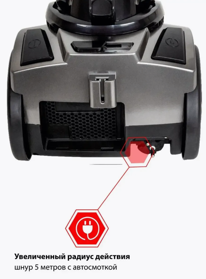 Компактный и надежный бытовой пылесос без мешка JH-VC311 идеально подходит для эффективной и быстрой уборки любых помещений. За счет циклонной системы и воздуховыпускного фильтра будет гарантирована очистка помещения даже от мельчайших частиц пыли. Фильтр тонкой очистки эффективно очистит выдуваемый воздух от микрочастиц размером от 0,1 мкм до 1,0 мкм. Благодаря металлической телескопической трубке, Вы без труда сможете отрегулировать ее длину и сменить насадки. Длины кабеля (5 м) вполне достаточно для свободной уборки помещения до 8 метров. Уход за пылесосом предельно прост: моющиеся фильтры промываются холодной водой, а мусор из контейнера увеличенного объема 2 литра вытряхивается в мусорное ведро.