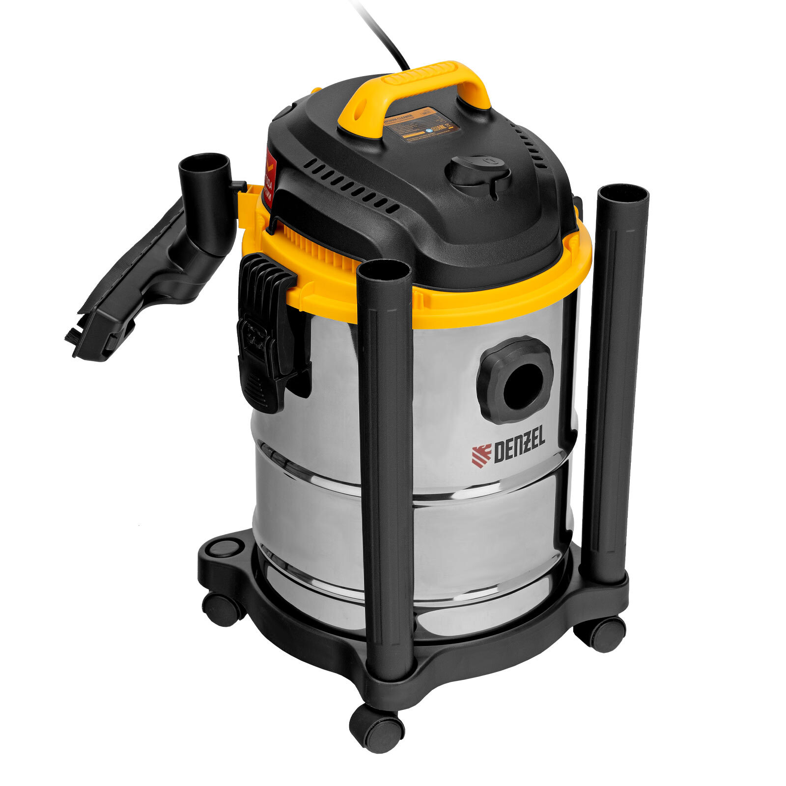 Пылесос строительный Denzel SVC15 28201 мощностью 1200 Вт, с баком объемом 15 л и шлангом длиной 2 м, предназначен для уборки бетонной, кирпичной пыли, опилок, стружки, также предусмотрена функция сбора воды. Пылесос используется во время проведения строительных и ремонтных работ, будет полезен для поддержания чистоты в мастерской, гараже, производственном помещении.