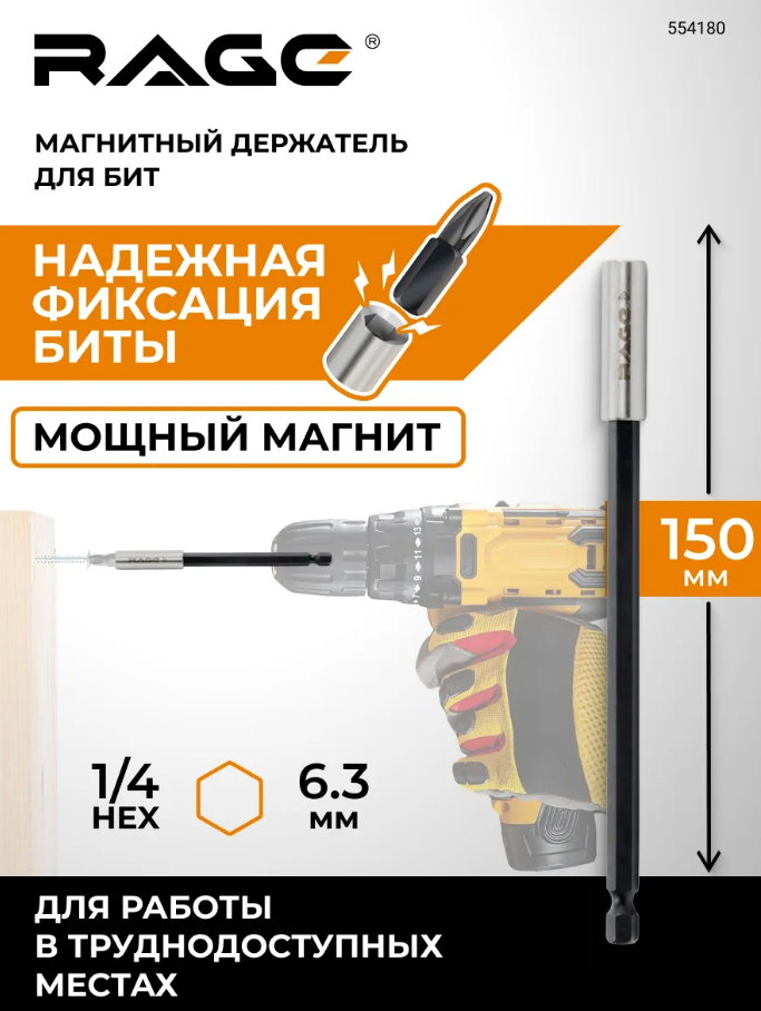 Держатель для бит RAGE by VIRA обеспечивает надежную фиксацию биты и ее быструю замену.