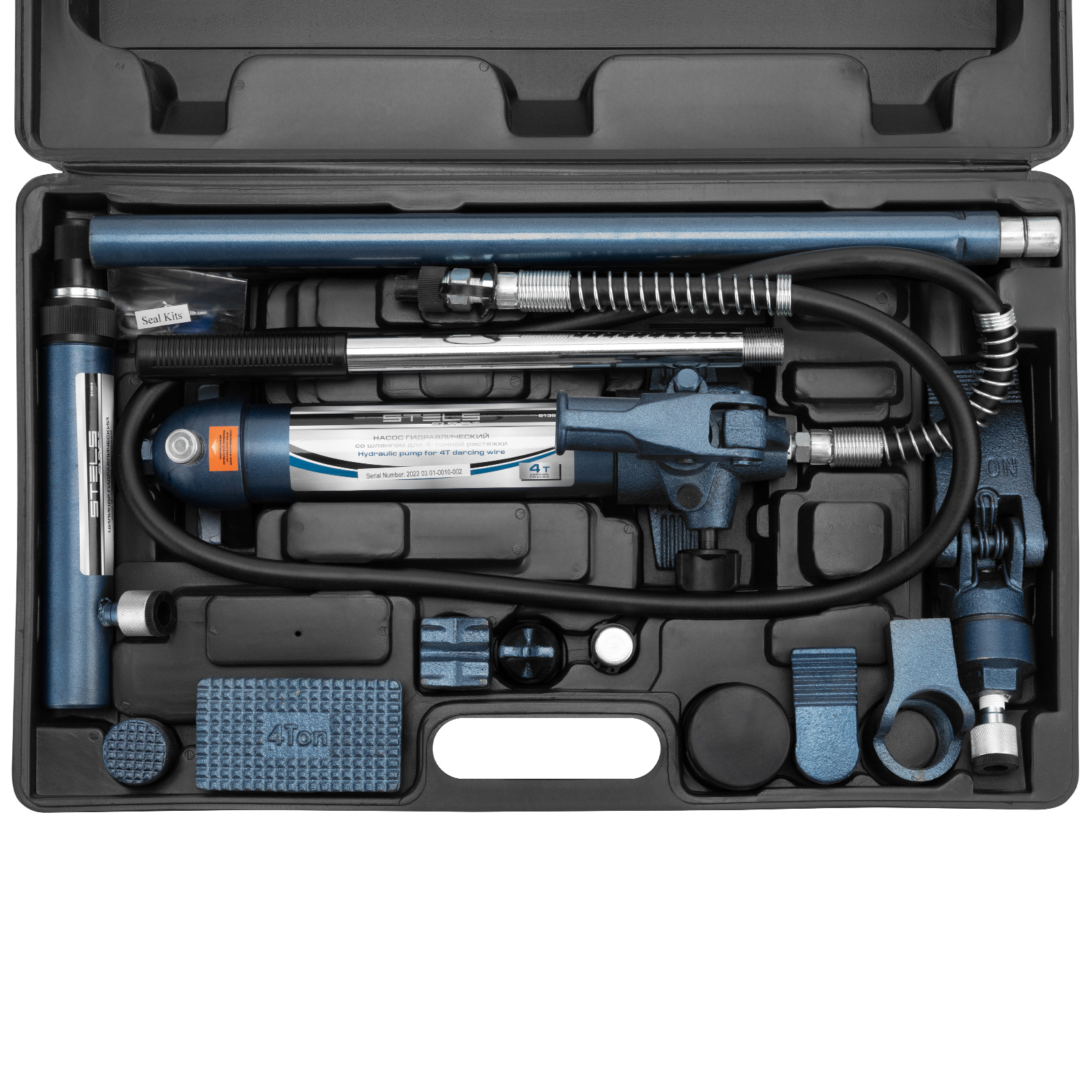Гидравлическая растяжка Stels 51354, рассчитанная на усилие до 4 т, — компактный набор в пластиковом кейсе, включающий 17 предметов: цилиндр, гидронасос, адаптер, удлинители, основание и 7 сменных насадок. Используется для проведения кузовного ремонта и рихтовки металлических конструкций. Растяжка удобна для восстановления геометрии проемов автомобильных дверей и окон, а также значительных по площади участков кузова. Комплект пригодится в автосервисе, а также для работы в гараже.