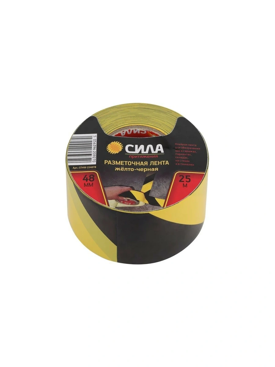Разметочная самоклеящаяся лента СИЛА STHW2548YB 25м x 48 мм x 0.15 мм, желто-черная 24/72/1728 Б0048520 применяется для обозначения зон в гаражах, паркингах, складах, на стенах и в туннелях. Подходит для разметки парковочных мест и подъездных путей. Может использоваться в гаражах, туннелях, паркингах, погрузочно-разгрузочных зонах складов, цехов и магазинов.