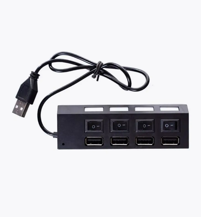 Разветвитель USB позволяет подключить к компьютеру до 4 устройств одновременно. С функцией передачи данных. Каждый разъём оснащён переключателем с подсветкой.