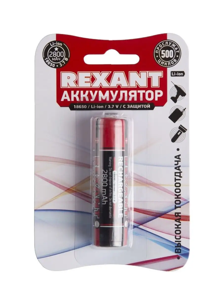 Литий-ионный аккумулятор 18650 предназначен для использования в фонарях и других устройствах с высоким энергопотреблением.