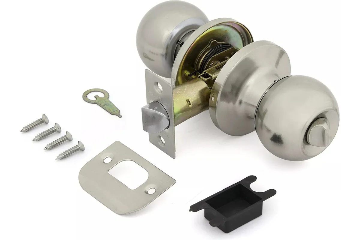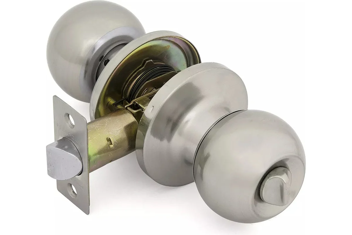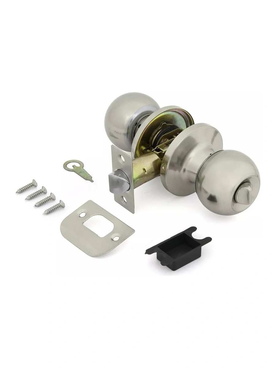 Ручка защелка 607 SN BK обладает следующими характеристиками: Рекомендовано для использования в ванных комнатах, кабинетах, спальнях. Дверной механизм может быть заблокирован поворотом фиксатора. Стойкость гальванического покрытия в камере соляного тумана более 48 часов. Материал: сталь. Диаметр шара: 53 мм. Тип защелки: универсальная. Глубина врезки: 60-70 мм. Толщина двери: 32-51 мм.