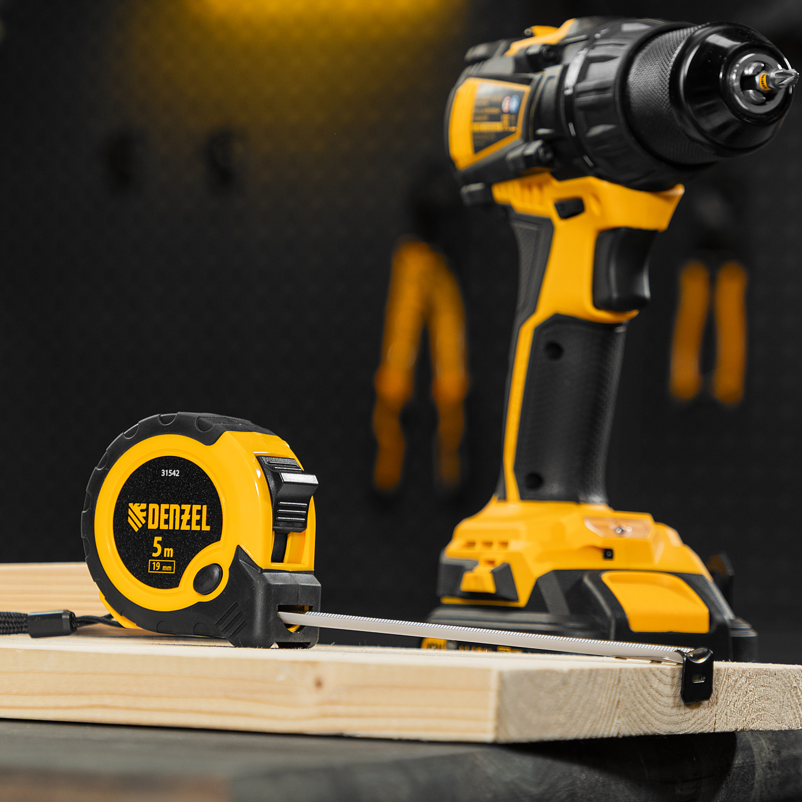 Рулетка Denzel 31542 в двухкомпонентном корпусе, с кнопкой-паузой, с полотном шириной 19 мм и длиной 5 м, используется для измерения расстояний и размеров предметов. Стальная лента с эмалевым покрытием и защитной пластиной в месте крепления зацепа рассчитана на долгий срок службы. Рулетка будет полезна во время строительства и ремонта, а также пригодится в быту.