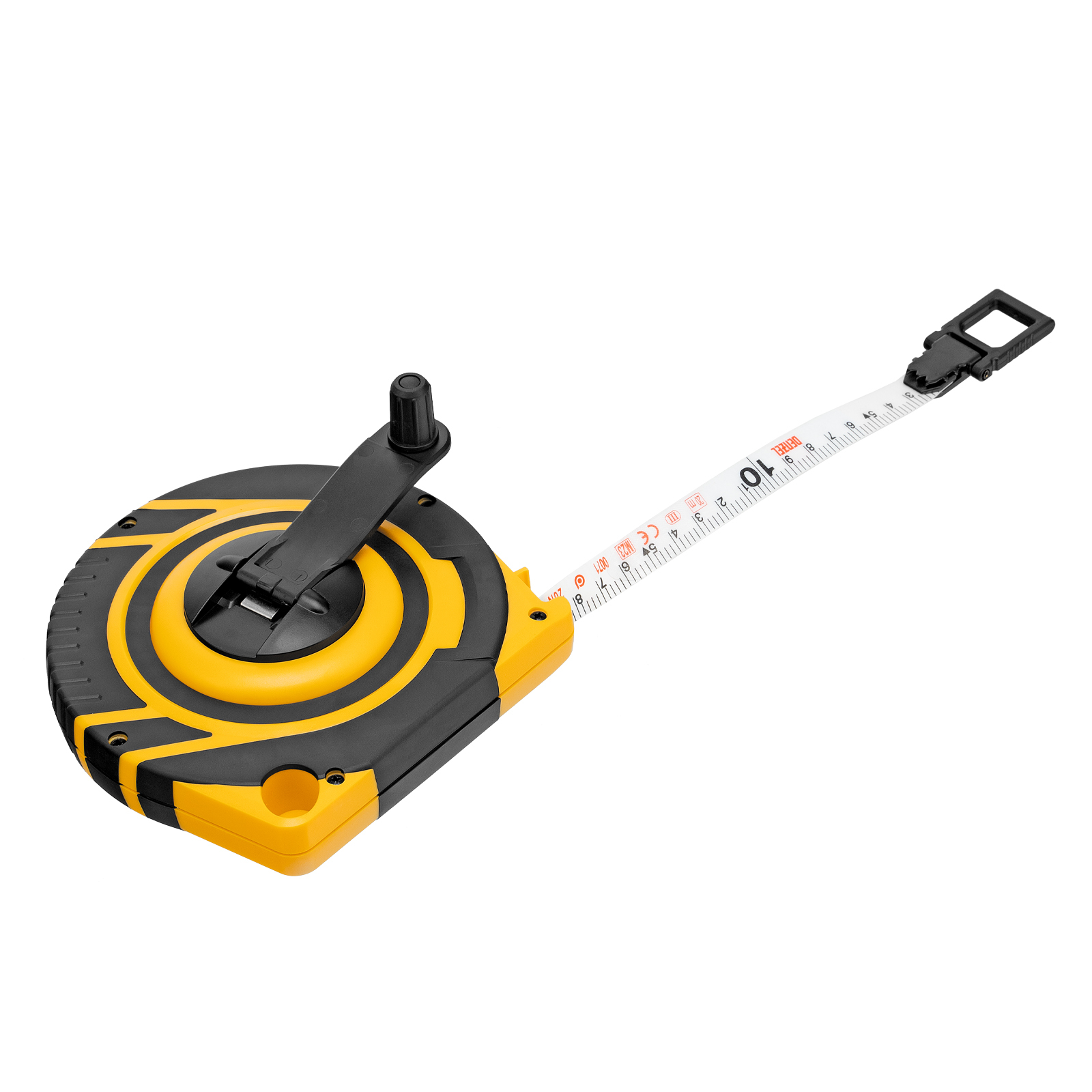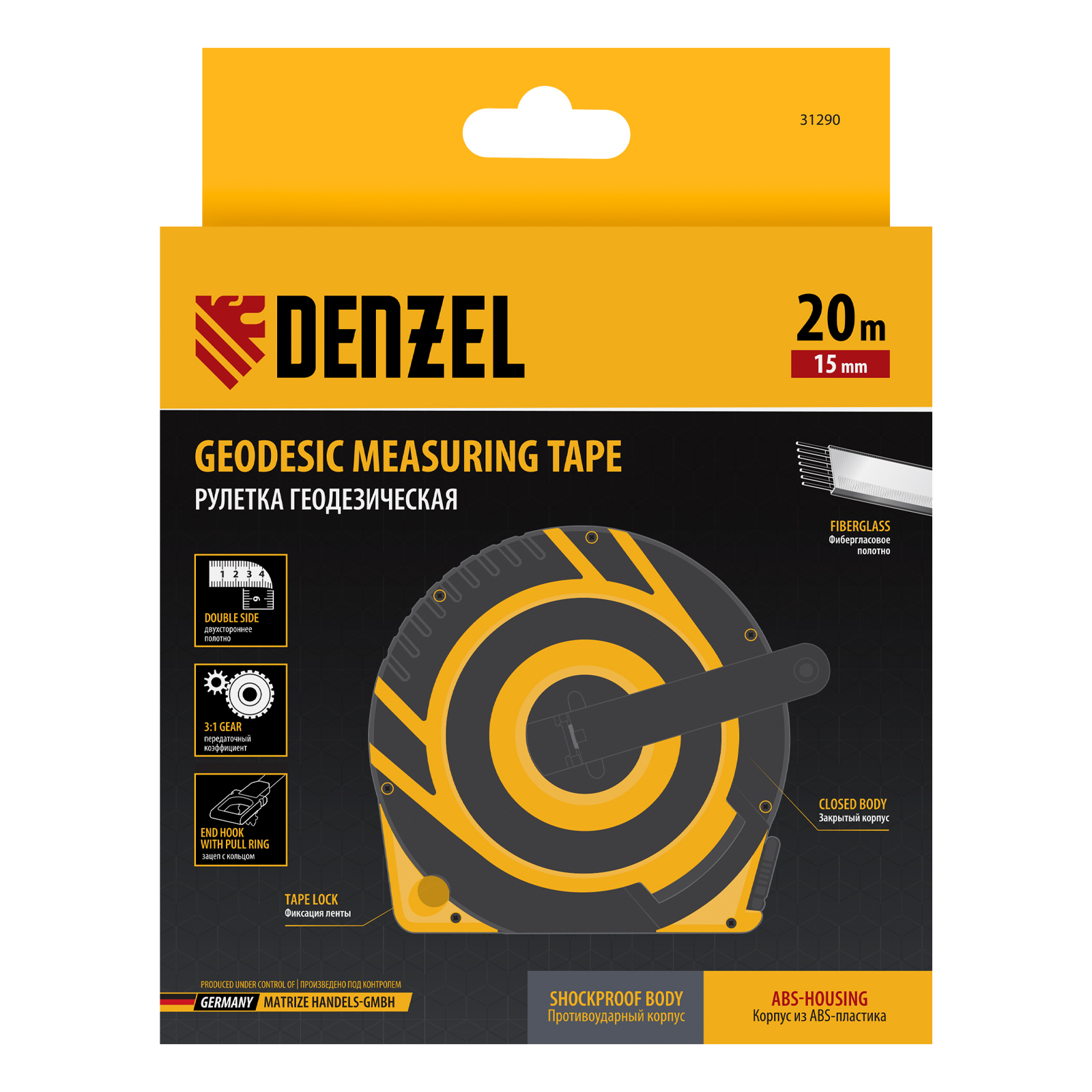 Геодезическая рулетка Denzel 31290 в закрытом корпусе, с фибергласовой лентой размером 20 м и х 15 мм, используется для проведения замеров на открытых участках и строительных объектах. Двухкомпонентный корпус из ABS-пластика с вставками из термопластичной резины устойчив к повреждениям. Рулетка будет полезна во время картографических исследований и при создании ландшафтного дизайна.