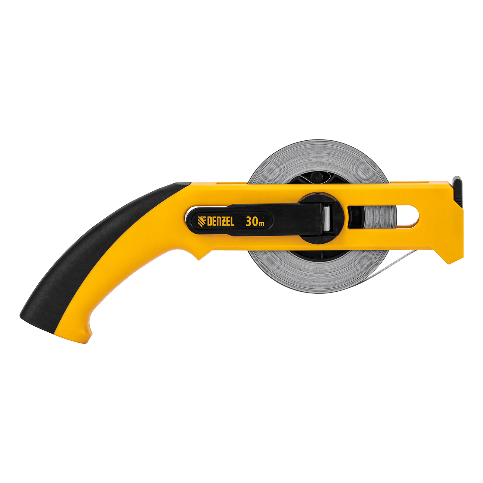 Геодезическая рулетка Denzel 31491 в открытом корпусе, с металлической лентой размером 30 м х 13 мм, с односторонней шкалой, применяется для проведения замеров на открытых участках. Пригодится во время строительных работ, обмеров садовых участков и дорог, обустройства территории.