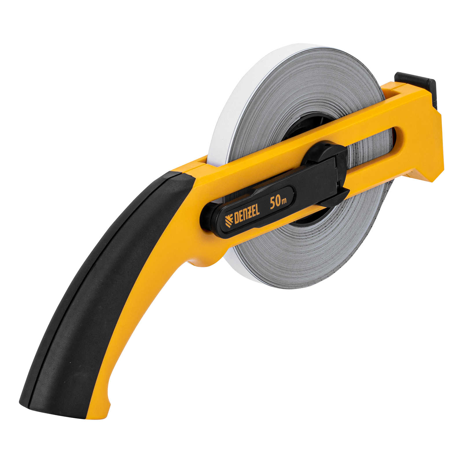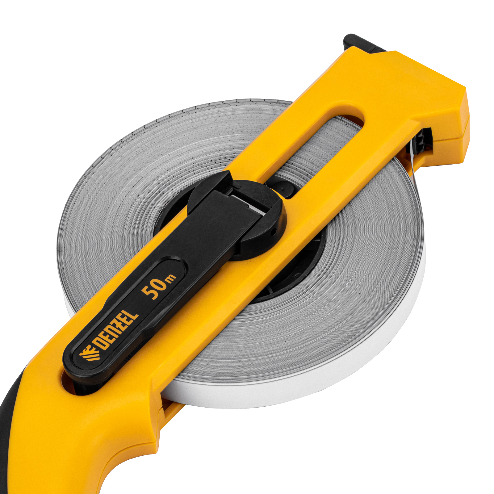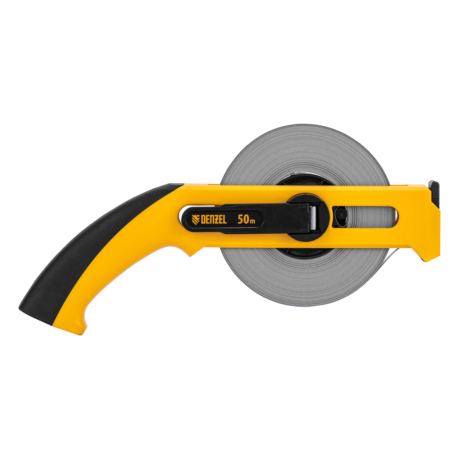 Геодезическая рулетка Denzel 31492 в открытом корпусе, с металлической лентой размером 50 м х 13 мм, с односторонней шкалой, применяется для проведения замеров на открытых участках. Пригодится во время строительных работ, обмеров садовых участков и дорог, обустройства территории.