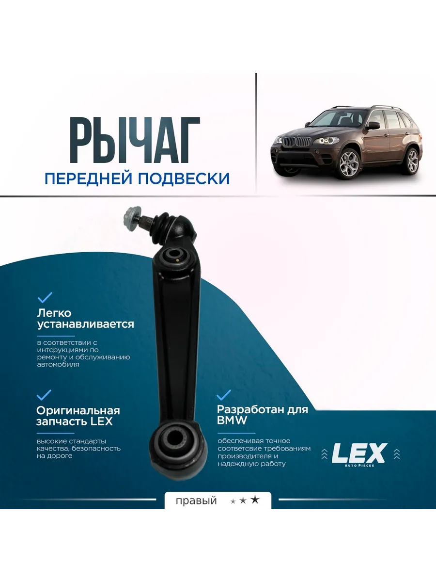 Рычаг передней подвески нижний правый — это высококачественная деталь, предназначенная для автомобилей BMW X5 серии E70, выпущенных в период с 2007 по 2013 годы. Этот элемент подвески играет ключевую роль в обеспечении устойчивости и управляемости автомобиля, выполняя функцию соединения колес с кузовом и контроля движения подвески. Рычаг LEX производится в Турции с применением современных технологий и высокопрочных материалов, что гарантирует его надежность и долговечность в условиях интенсивной эксплуатации.