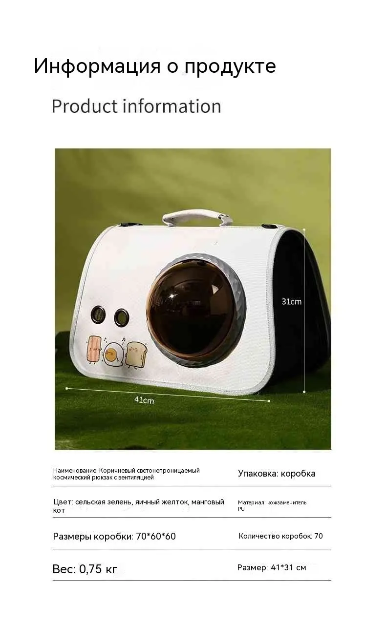 Изготовленный из высококачественных материалов, таких как нейлон, полиэфирное волокно и оксфорд, рюкзак обеспечивает долговечность и надежность. Прозрачное окно-иллюминатор, благодаря своей округлой форме, предоставляет кошке широкий обзор. Переноска подходит для грызунов, кошек малых и средних размеров, а также для миниатюрных пород собак.