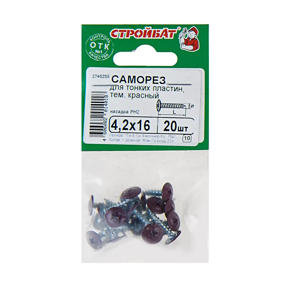 Технические характеристики саморезов Стройбат с буром темно красный/белый
