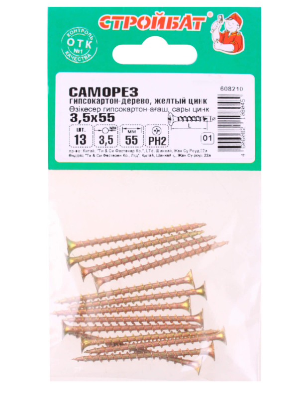 Саморезы гипсокартон-дерево 3,5x55 мм желтый цинк (13 шт) 608210
