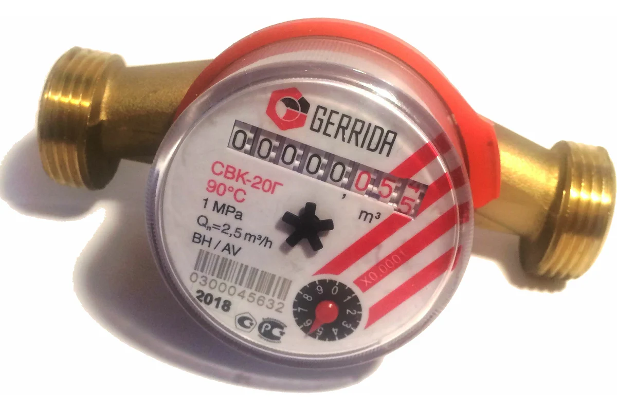 Счетчик горячей воды Геррида ГВС 3/4" - 130 мм СВК-20ГсКМЧ предназначен для измерения объёма воды в системах водоснабжения в соответствии с ГОСТ Р 50601-93.