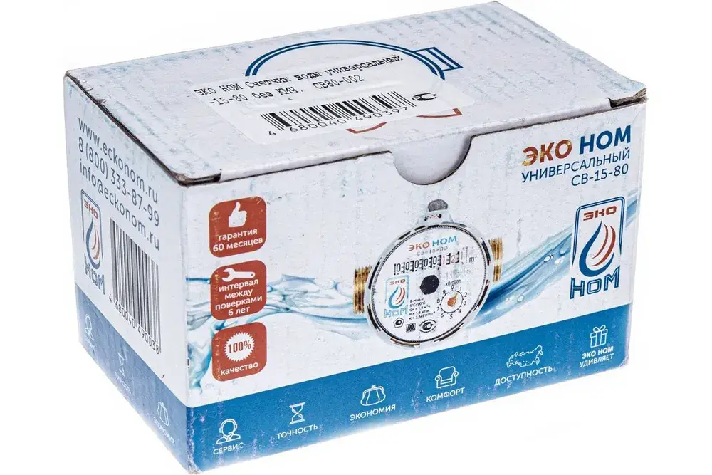Счетчик воды ЭКО НОМ СВ 15-80Представляет собой надежный и долговечный прибор для точного учета потребления воды. Давайте подробнее рассмотрим его ключевые особенности и преимущества: