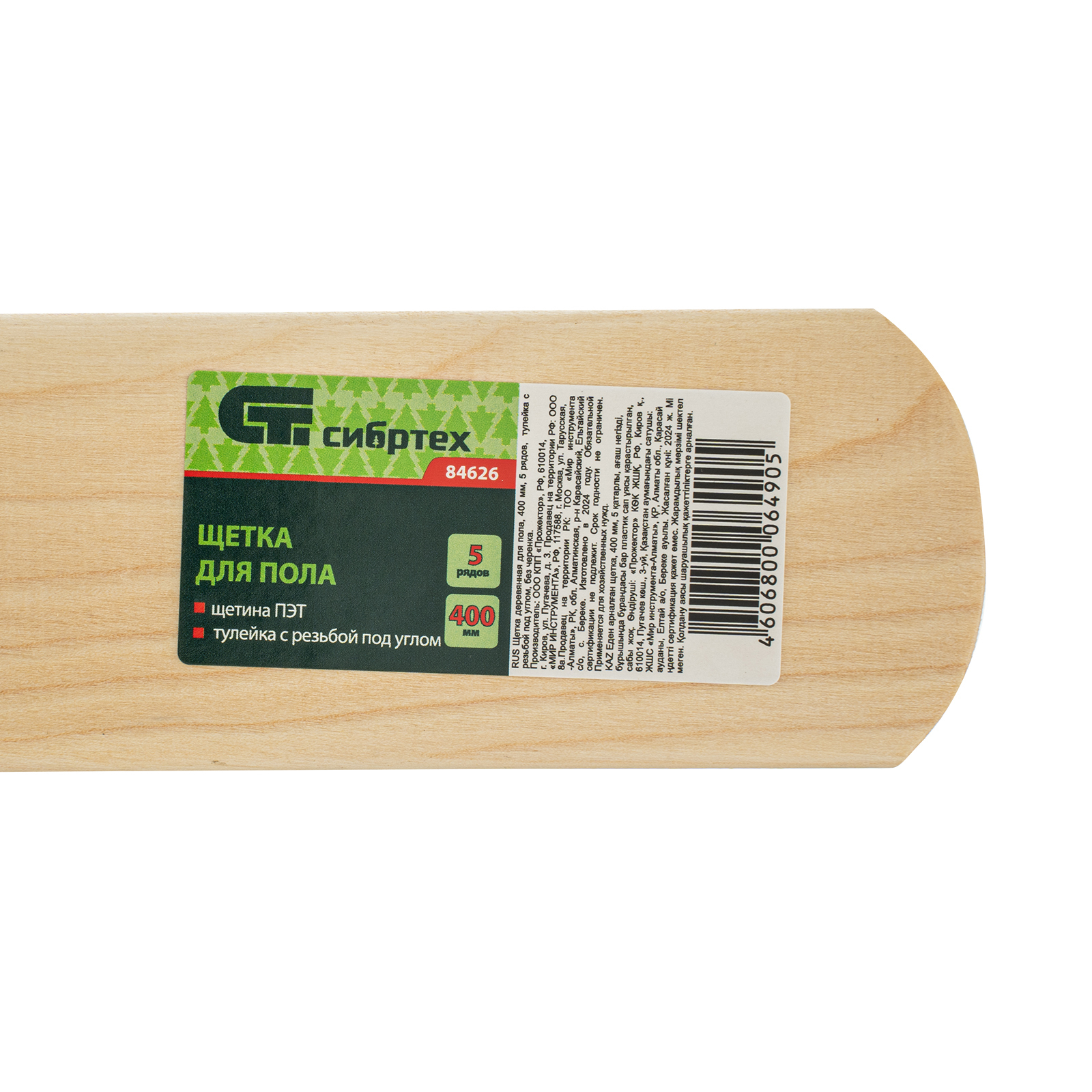 Деревянная щетка для пола Сибртех 84626 длиной 400 мм, с тулейкой с резьбой под углом, без черенка, имеет густую пятирядную щетину и предназначена для уборки как внутри, так и вне помещений. Тщательно сметает пыль и мусор с пола, а также листву и мусор с дорожек, площадок, тротуаров и лестниц. Рабочая часть длиной 400 мм удобна для уборки участков большой площади. Черенок приобретается отдельно, рекомендуемая модель — 68416.