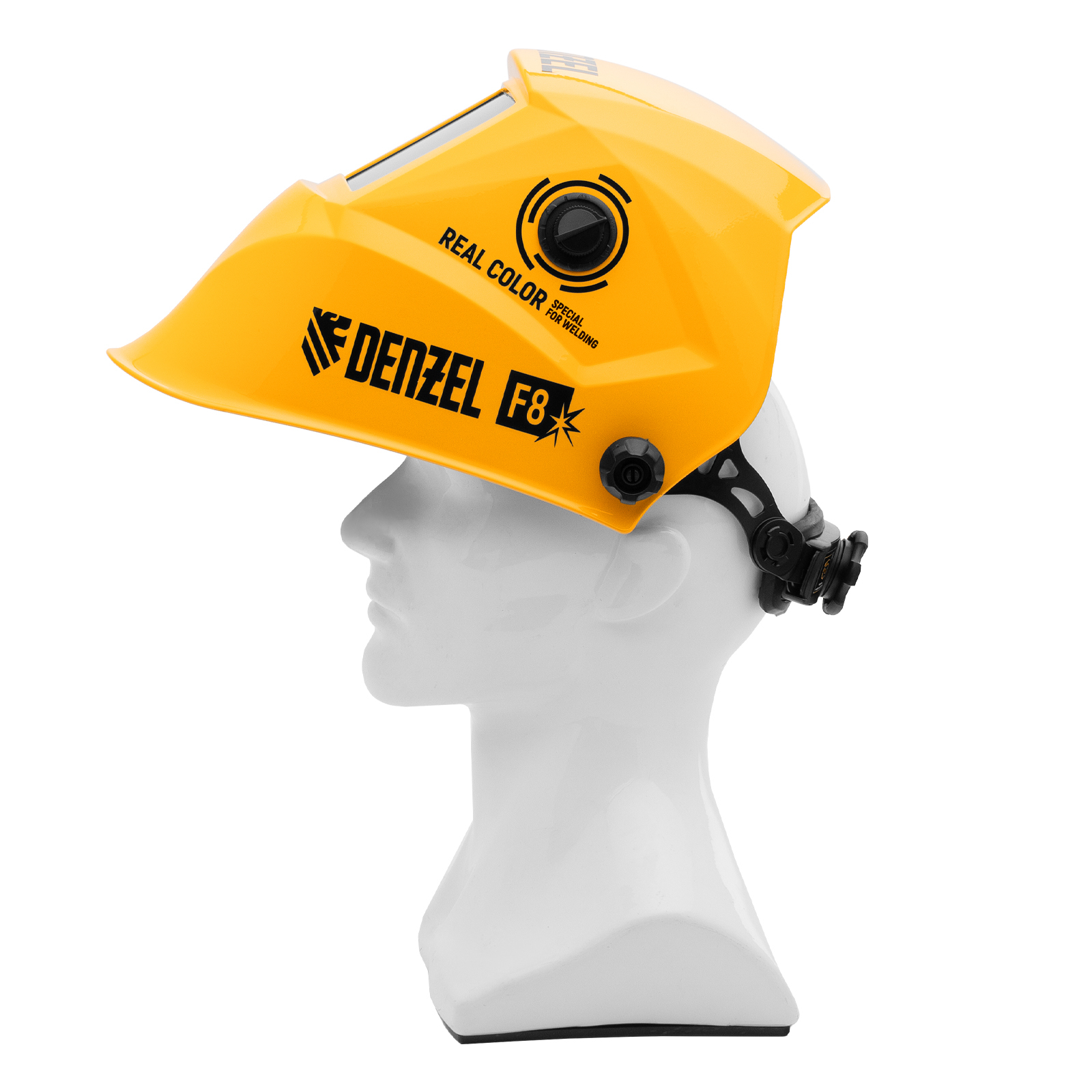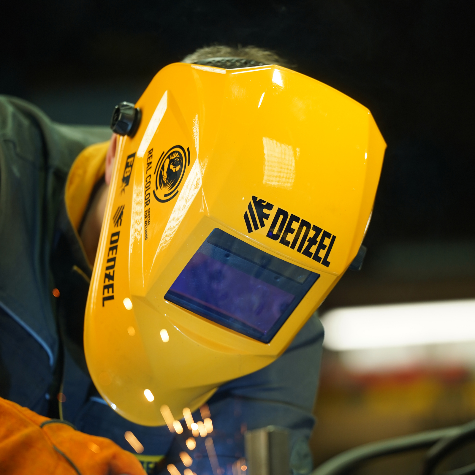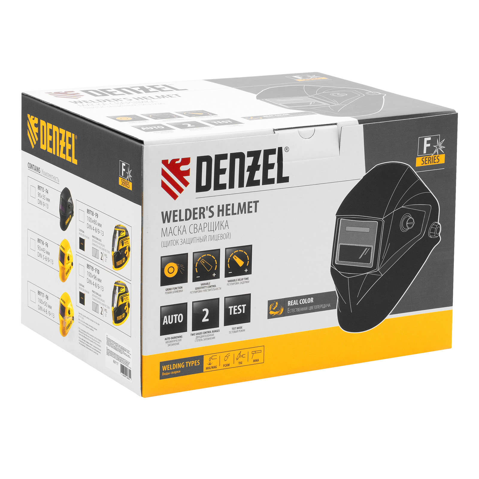 Защитный лицевой щиток (маска сварщика) Denzel F8 89717 со смотровым окном размером 100 x 50 мм и функцией затемнения DIN 4/5-8/9-14 используется во время проведения сварочных работ. Надежно защищает глаза и лицо пользователя от искр, брызг расплавленного металла, а также от инфракрасного и ультрафиолетового излучения. Корректную работу светофильтра обеспечивают два фотодатчика. Щиток подходит для проведения сварочных работ в режимах MMA, MIG/MAG, TIG, а также для выполнения плазменно-дуговой сварки, плазменной и дуговой резки.
