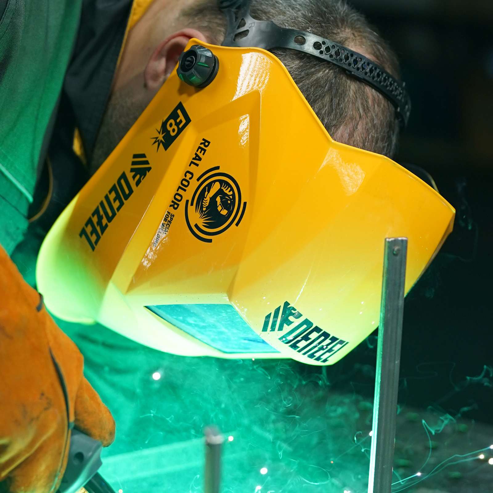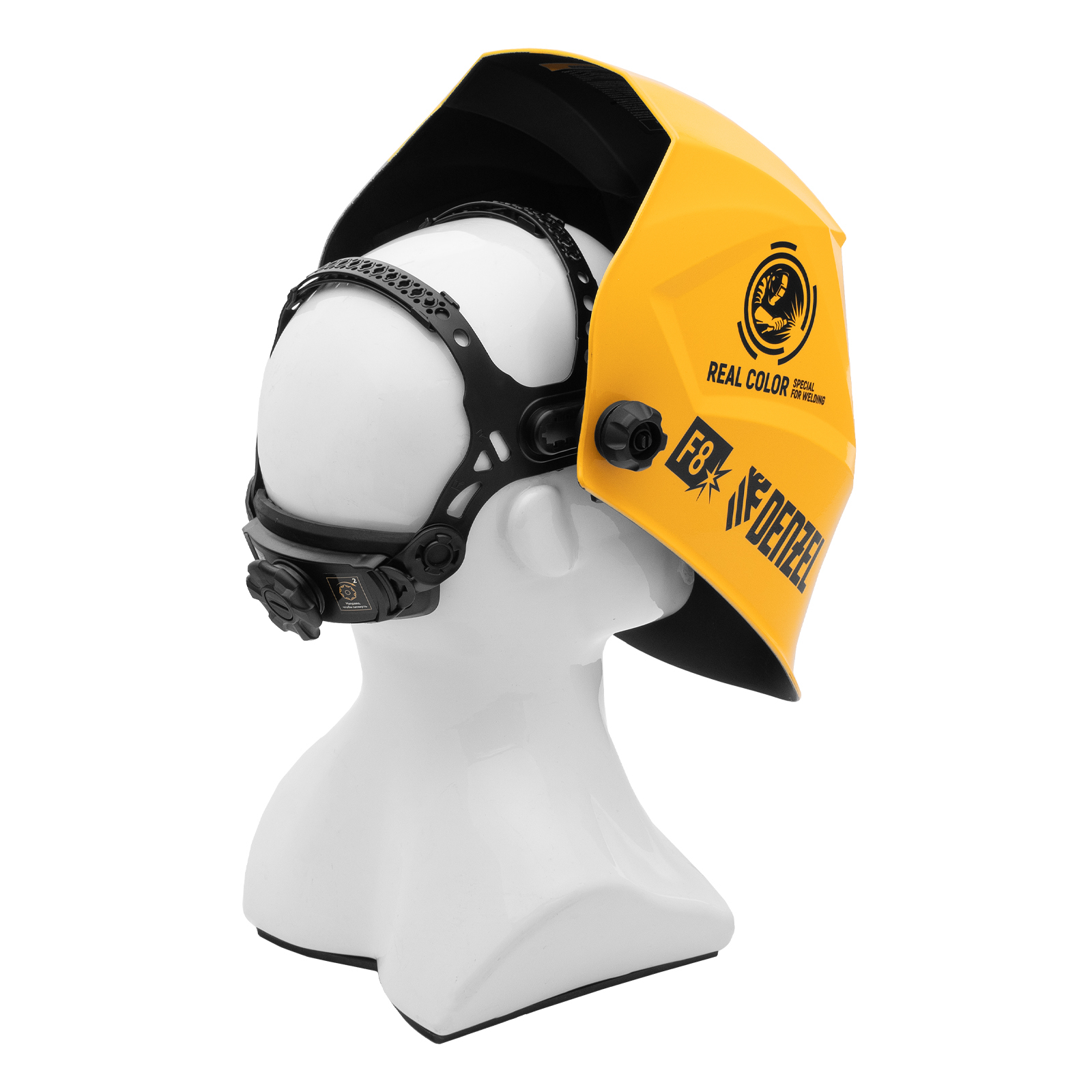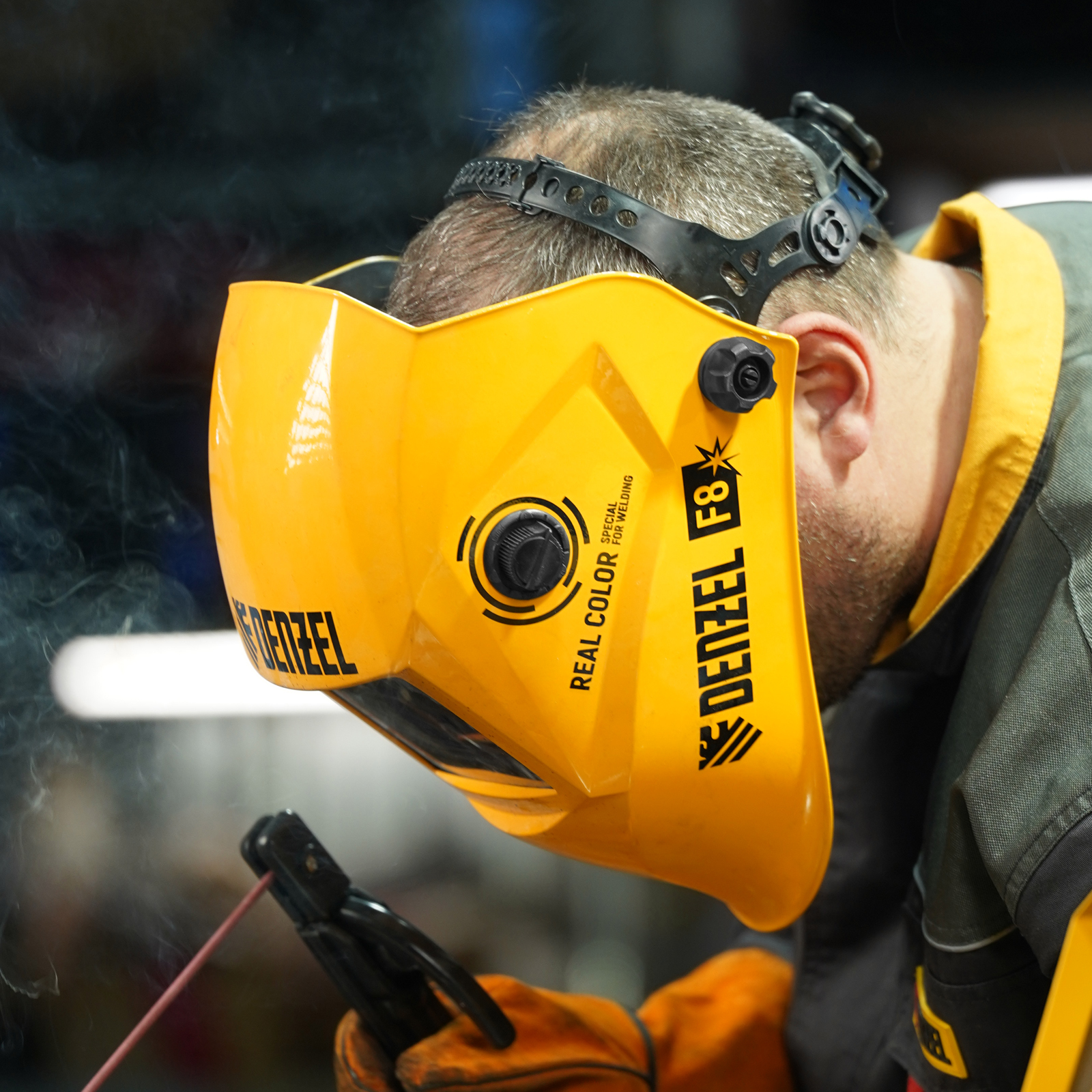 Защитный лицевой щиток (маска сварщика) Denzel F8 89717 со смотровым окном размером 100 x 50 мм и функцией затемнения DIN 4/5-8/9-14 используется во время проведения сварочных работ. Надежно защищает глаза и лицо пользователя от искр, брызг расплавленного металла, а также от инфракрасного и ультрафиолетового излучения. Корректную работу светофильтра обеспечивают два фотодатчика. Щиток подходит для проведения сварочных работ в режимах MMA, MIG/MAG, TIG, а также для выполнения плазменно-дуговой сварки, плазменной и дуговой резки.