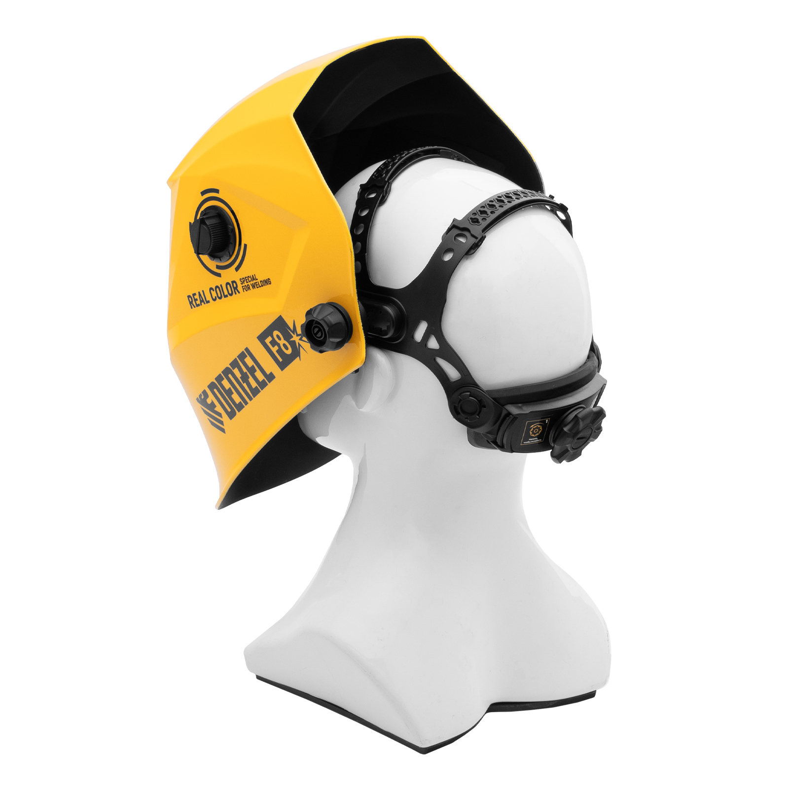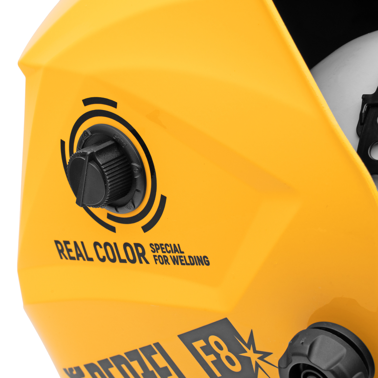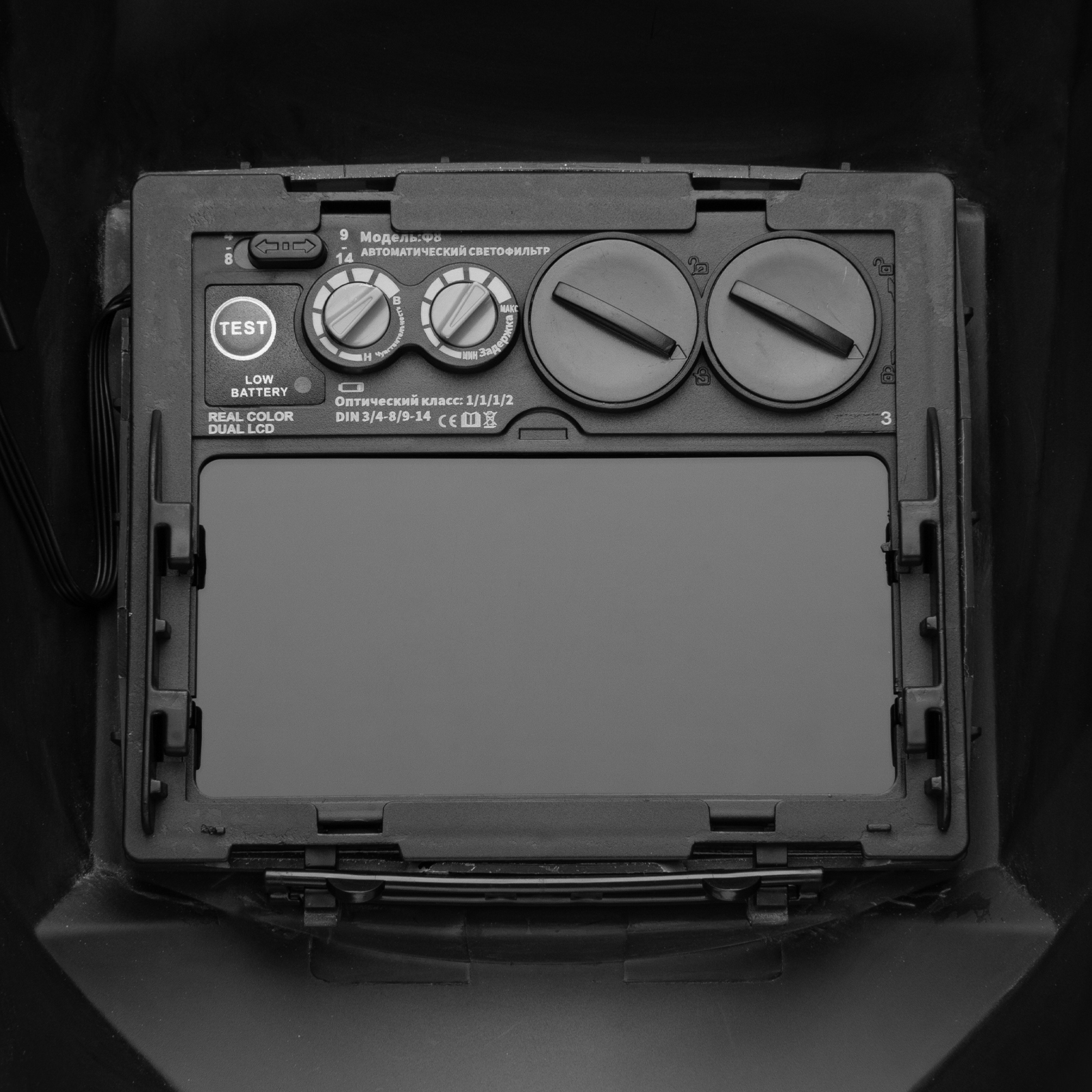 - Настройка чувствительности светофильтра — щиток эффективен как при ярком свете, так и при работе в темном помещении.