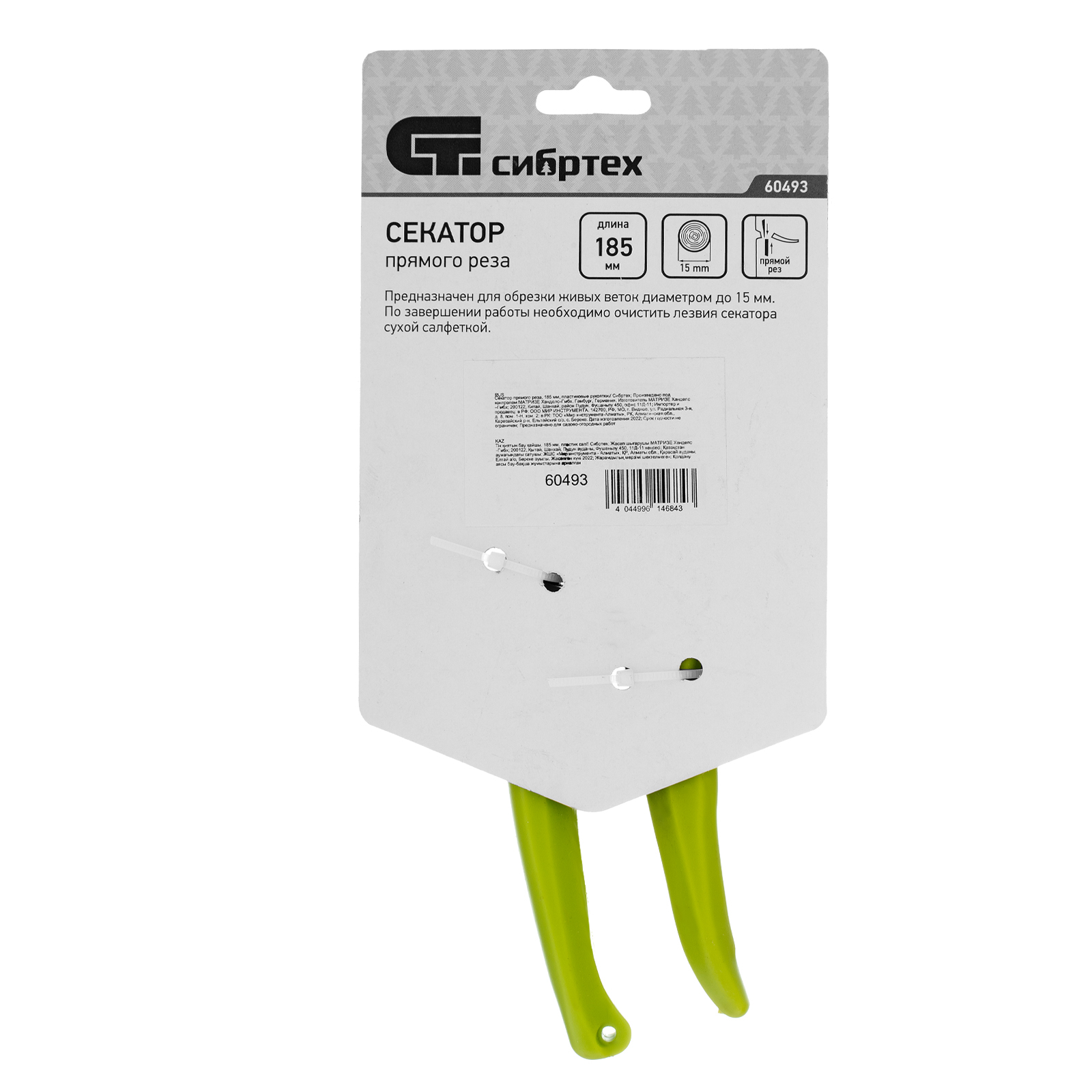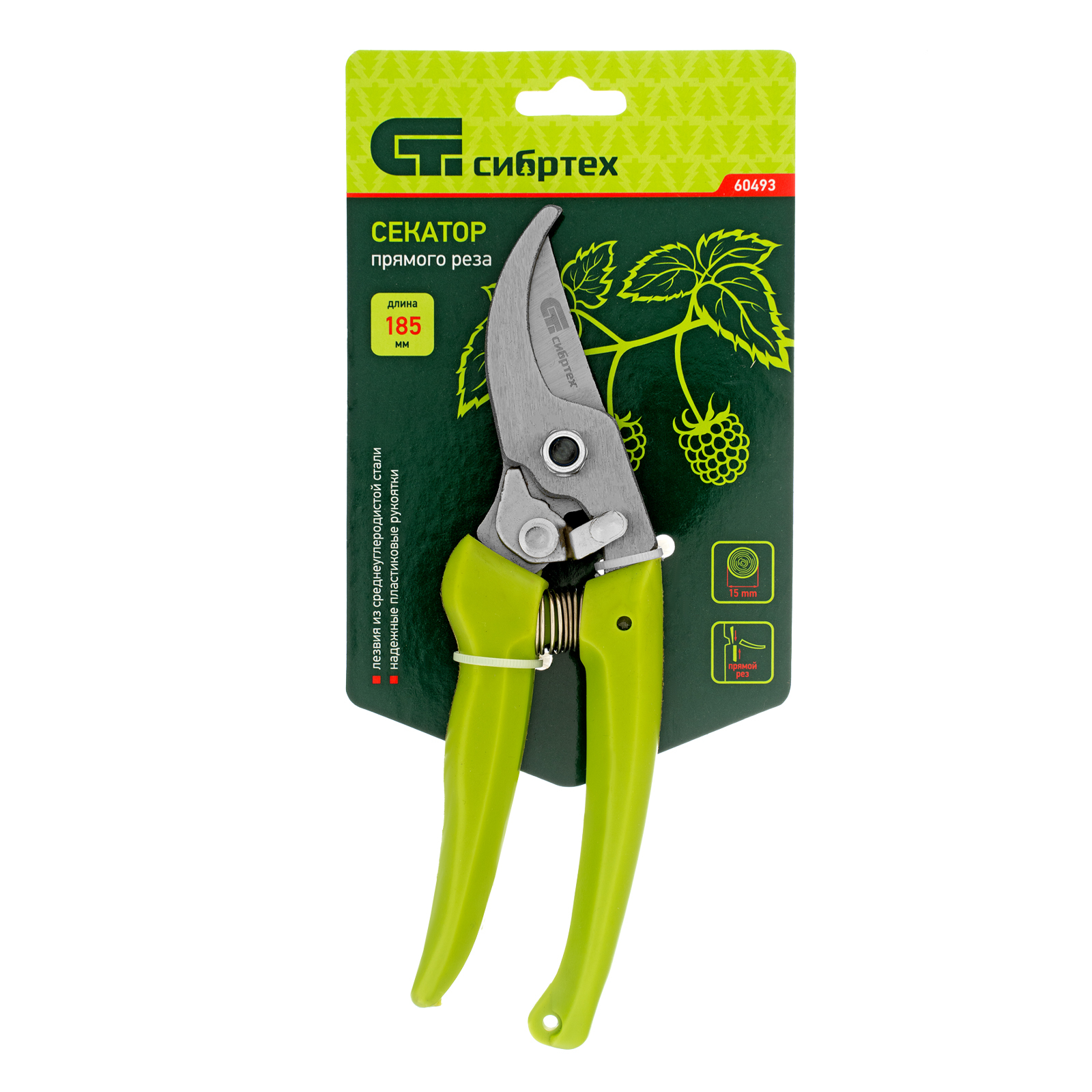 Секатор прямого реза Сибртех 60493 длиной 185 мм, с пластиковыми рукоятками, используется в саду и огороде для срезания живых веток диаметром до 15 мм. Движущиеся в параллельных плоскостях лезвия быстро и аккуратно срезают ветку, минимизируя потери сока. У секатора имеется регулировочный винт, позволяющий менять плотность примыкания лезвий.